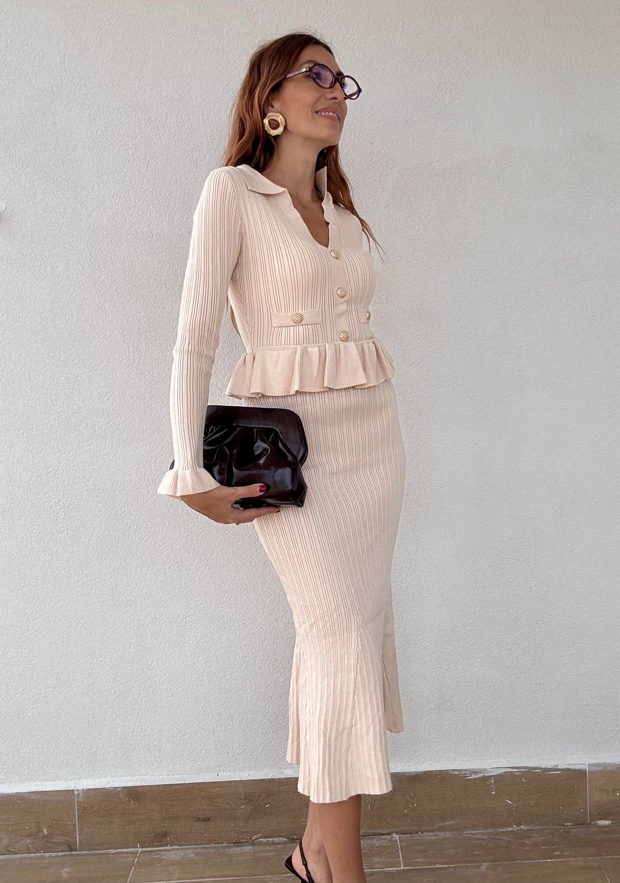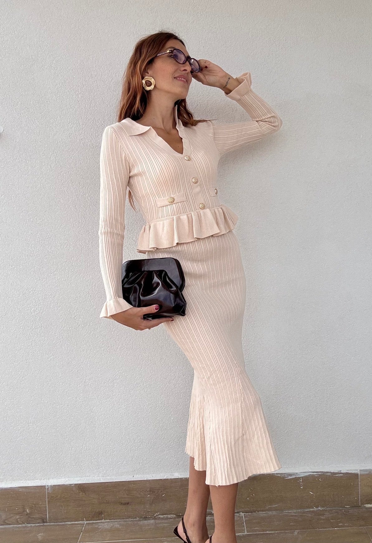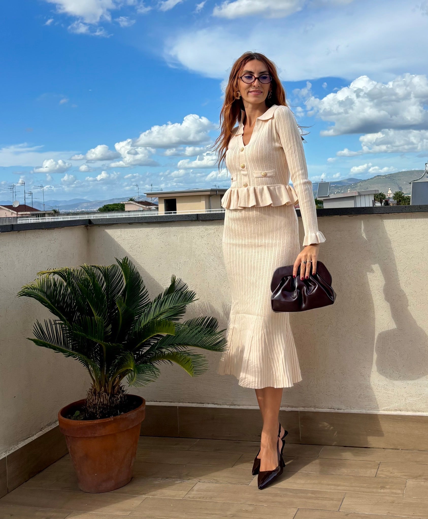 L'abito Beatrice è la scelta perfetta per chi cerca eleganza e comfort. Questo modello longuette elasticizzato si adatta perfettamente fino a una taglia 44, offrendo una vestibilità raffinata. I bottoncini dorati aggiungono un tocco di classe, valorizzando ogni occasione. Disponibile in cinque colori, è ideale per chi vuole distinguersi con stile senza rinunciare alla praticità.