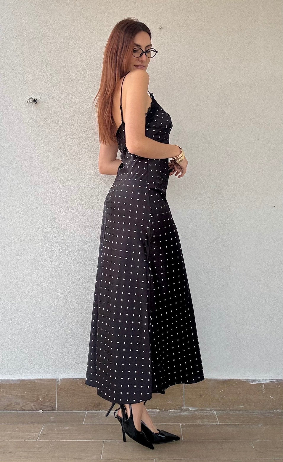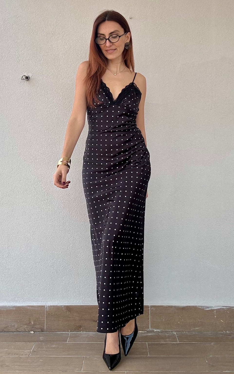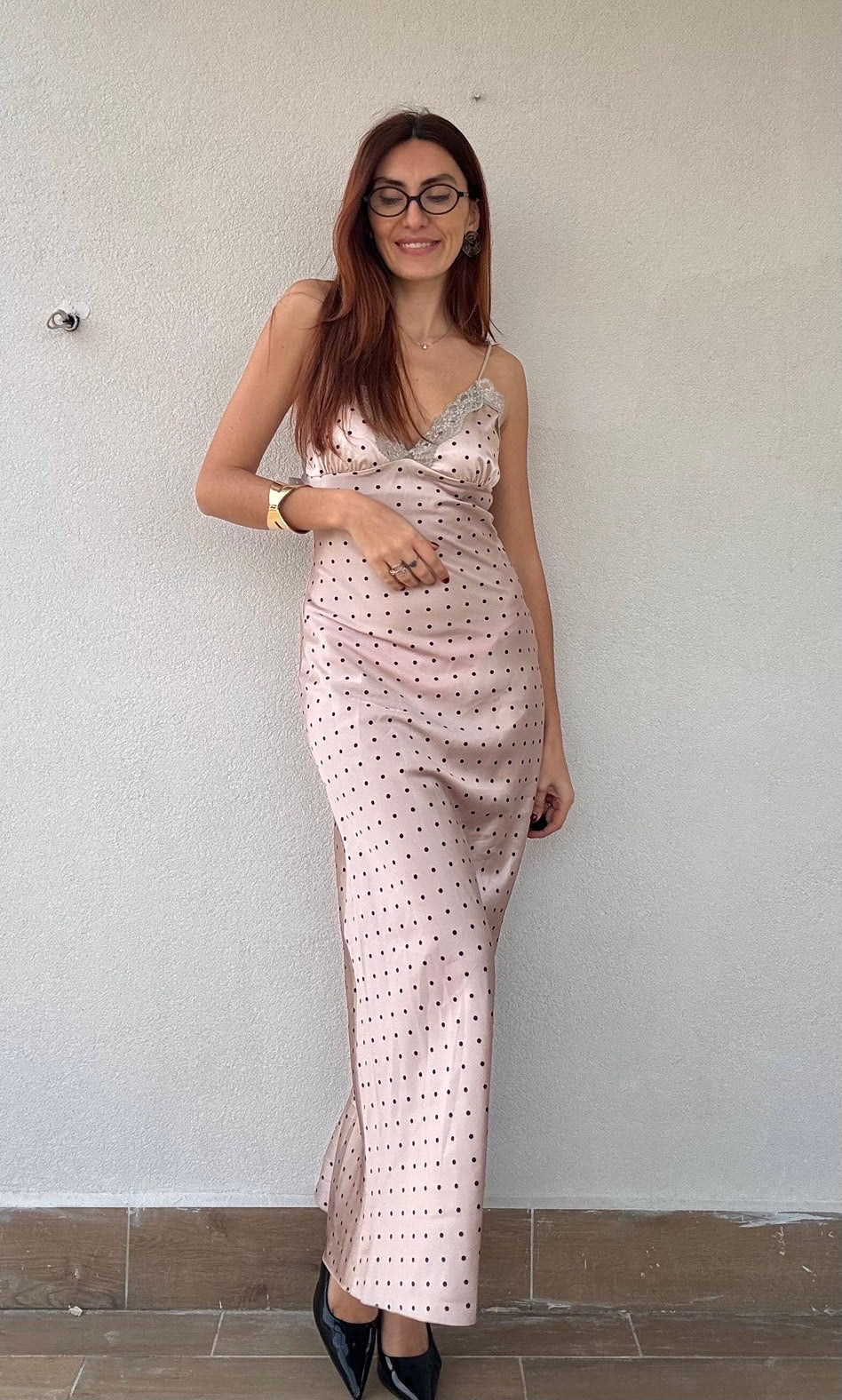 Elegante abito lungo in tessuto simil raso con delicati inserti in pizzo che catturano la luce. La spallina regolabile si adatta perfettamente a diverse silhouette, mentre la taglia unica veste comodamente fino alla 44. Un capo versatile e raffinato, disponibile in tre colori per adattarsi al tuo stile personale. Perfetto per occasioni speciali e serate indimenticabili.