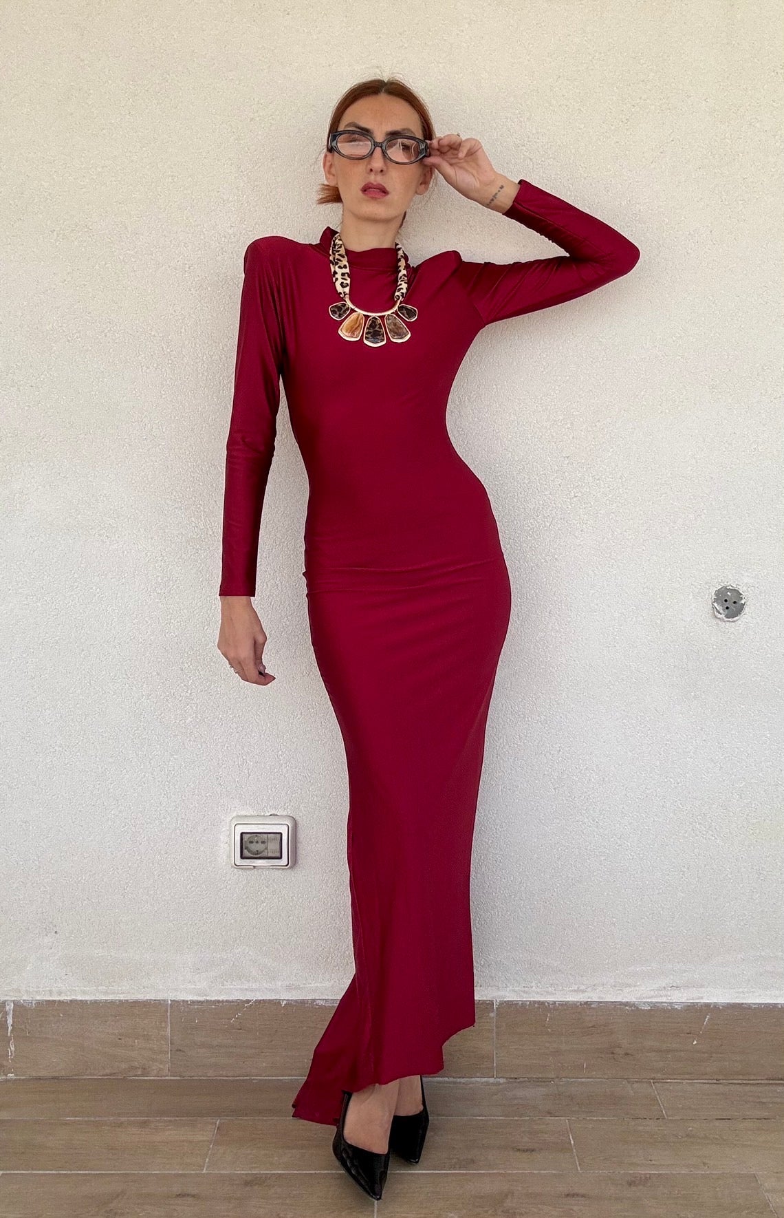 Questo abito lungo in Lycra lucida unisce eleganza e comfort, con una coda fluente e un raffinato mezzo collo. La taglia unica veste perfettamente fino a una 44, valorizzando la tua silhouette con stile e sensualità. Perfetto per occasioni speciali in cui desideri distinguerti con un tocco di classe.
