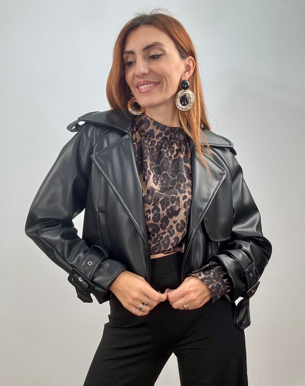Questa camicia crop a manica lunga con fantasia animalier aggiunge un tocco audace e alla moda al tuo guardaroba. La taglia unica è studiata per adattarsi perfettamente anche a una L, garantendo comfort e stile. Perfetta per valorizzare ogni look con un tocco di personalità.