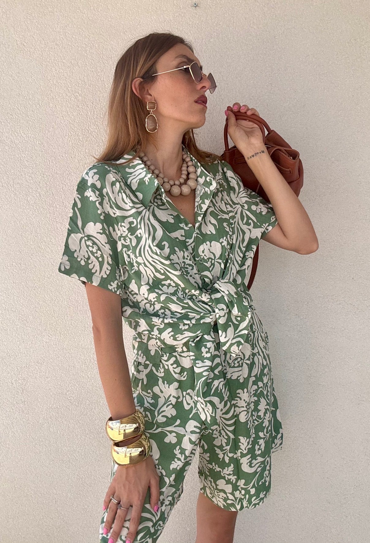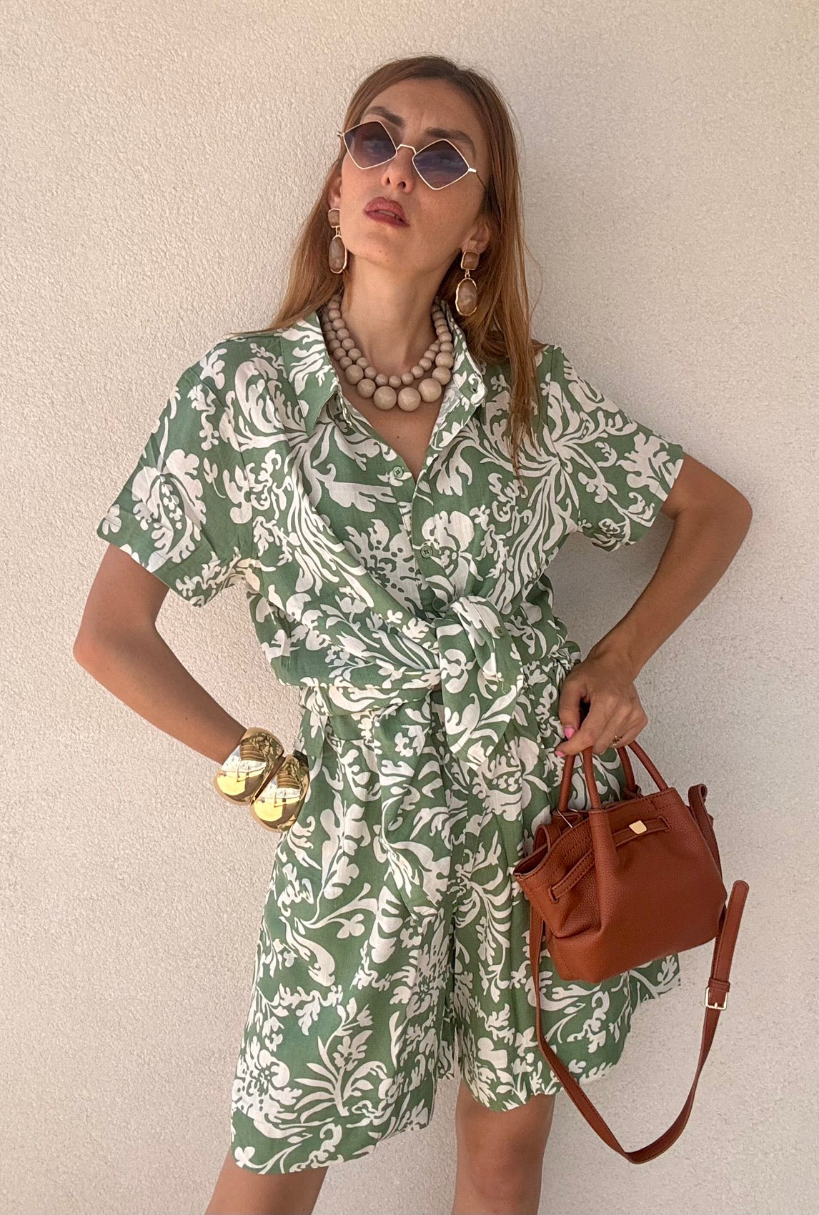 Questo coordinato in 100% cotone unisce comfort e stile con pantalone e camicia perfettamente abbinati. Disponibile in tre taglie versatili e tre colori eleganti, si adatta a ogni fisico con facilità. Antonella, che indossa una M/L nella foto, veste solitamente una taglia 40, dimostrando la vestibilità ideale di questo completo. Scegli la qualità e la praticità per un look sempre impeccabile.