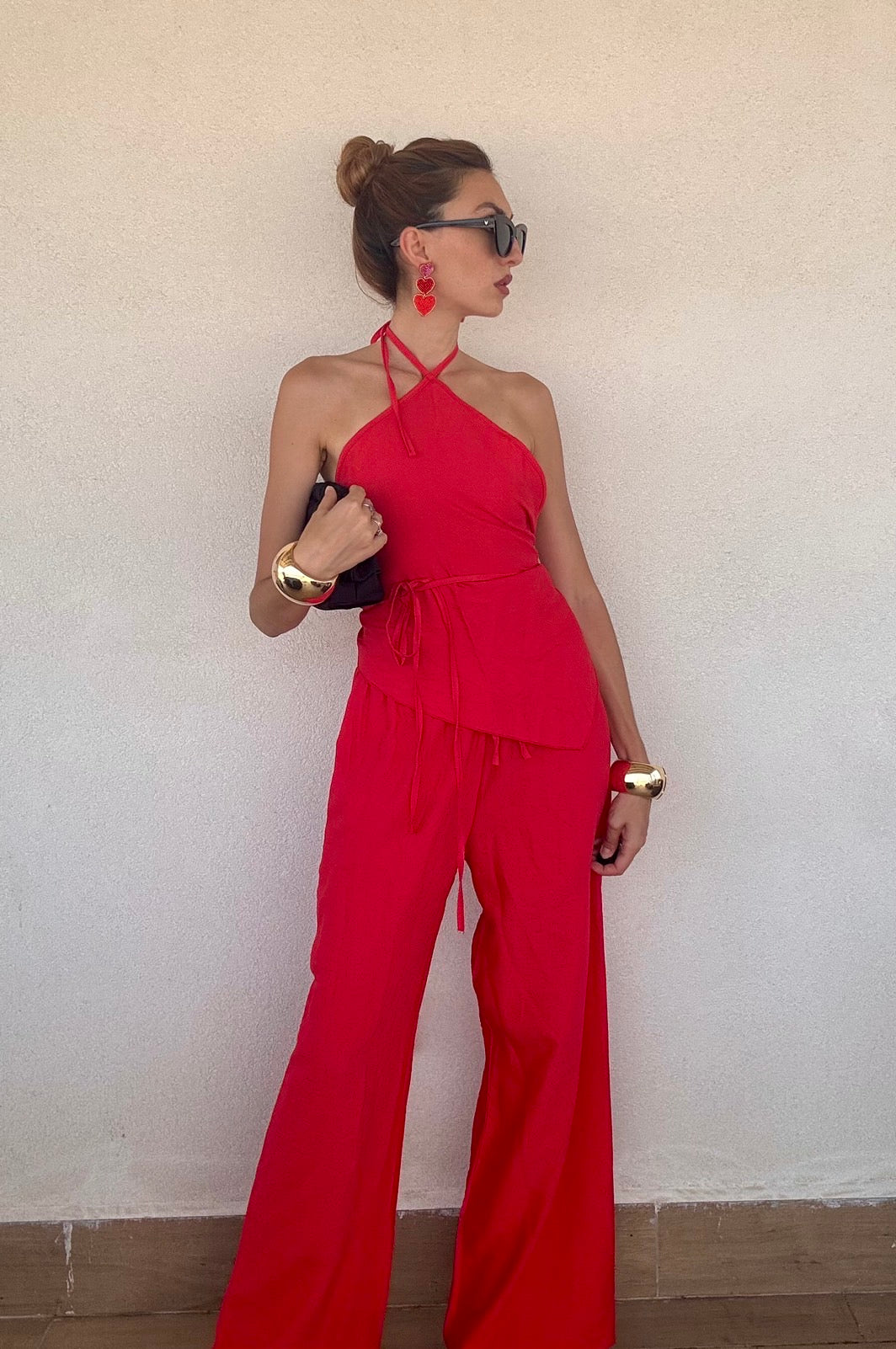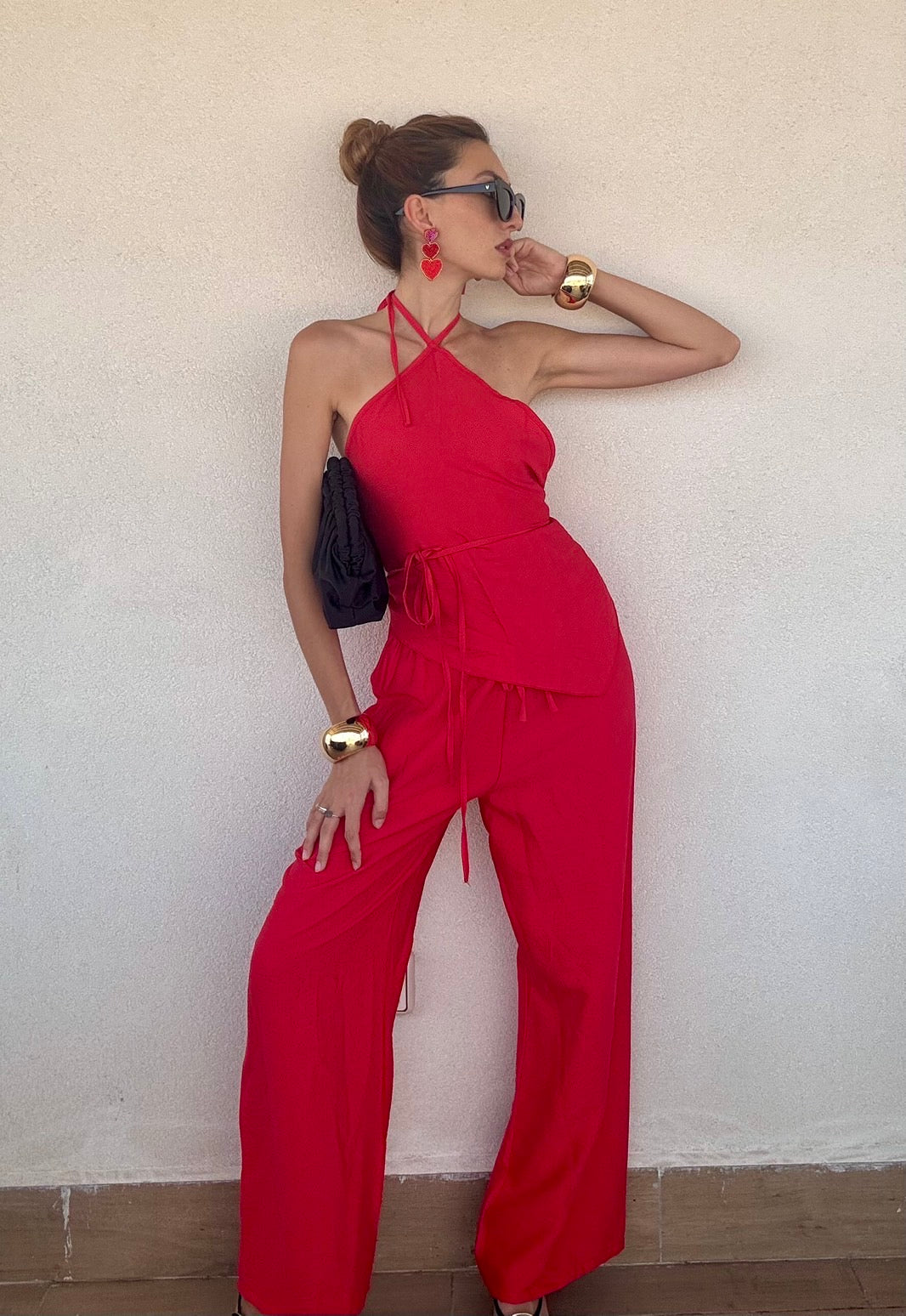Scopri il coordinato Moira, composto da pantalone e top in morbida viscosa, perfetto per un look elegante e confortevole. Il design con stringhe aggiunge un tocco di stile versatile, mentre la taglia unica si adatta comodamente fino a una 44. Disponibile in quattro colori, è la scelta ideale per chi cerca praticità senza rinunciare alla moda.