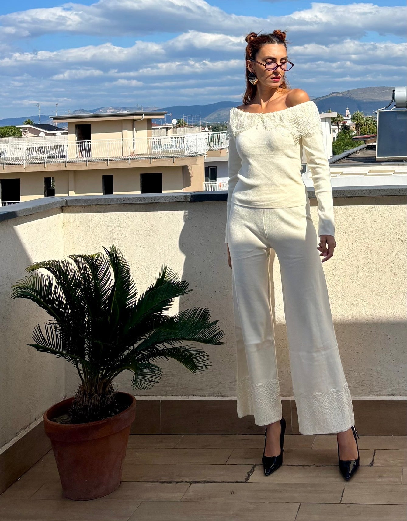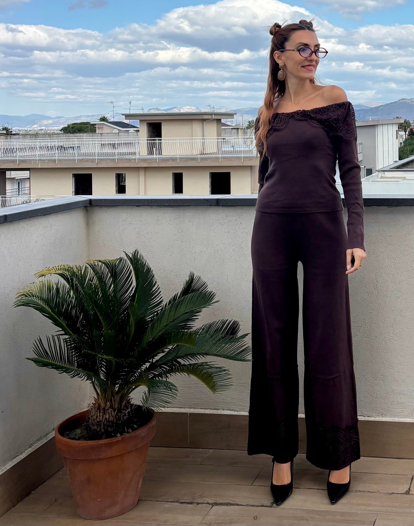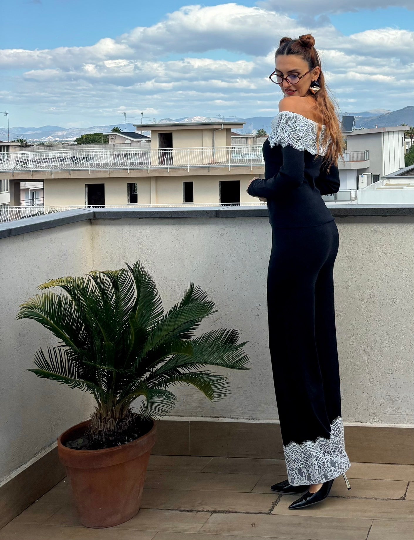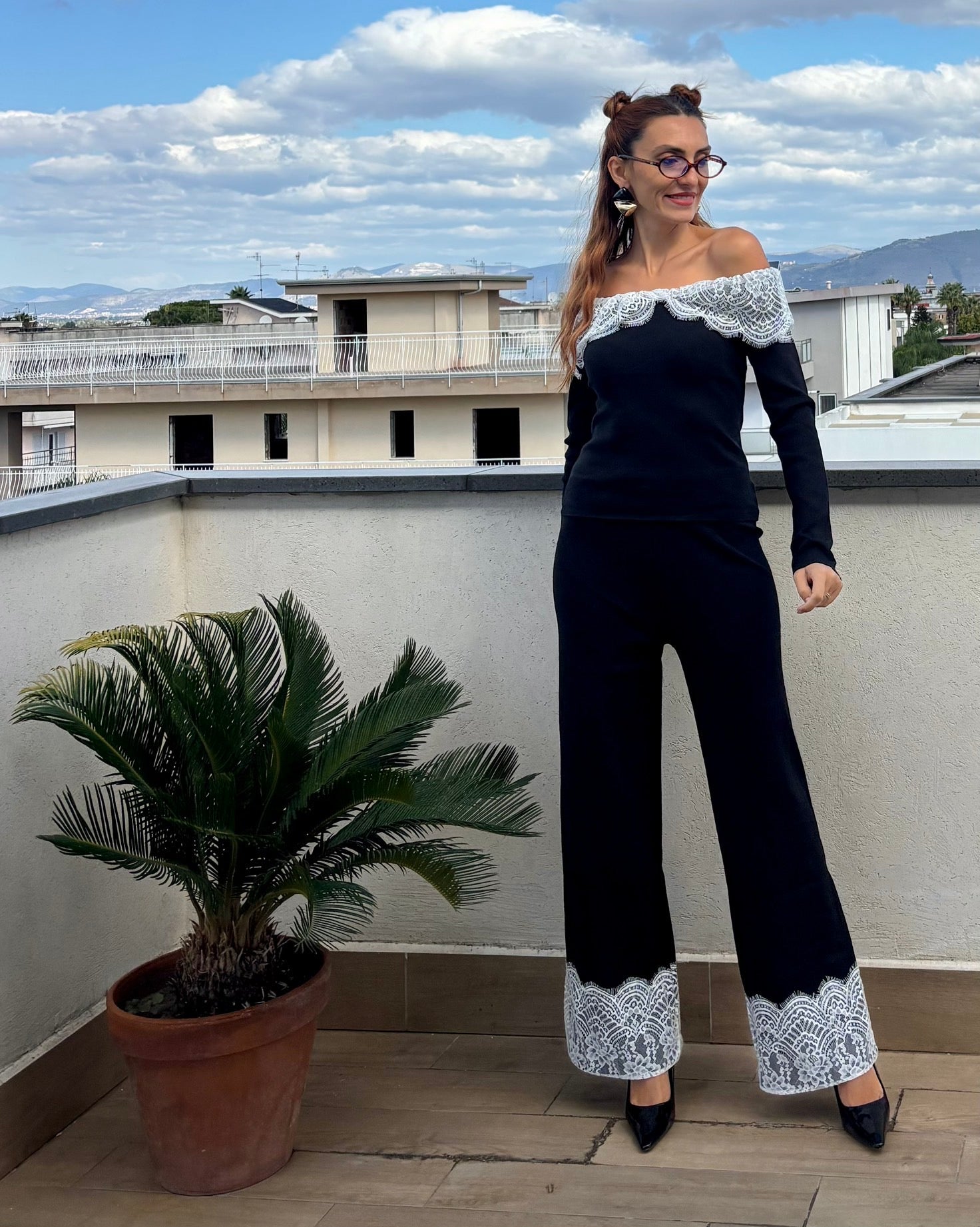 Scopri il coordinato Paris, un elegante outfit in viscosa composto da pantalone e pull con scollo a barca. I dettagli in merletto arricchiscono con delicatezza le caviglie e il petto, donando un tocco raffinato. Taglia unica adatta fino alla L, disponibile in tre colori per adattarsi al tuo stile. Il mix di tessuti garantisce comfort e vestibilità durante tutta la giornata. Scegli il coordinato Paris per un look sofisticato e versatile.