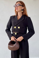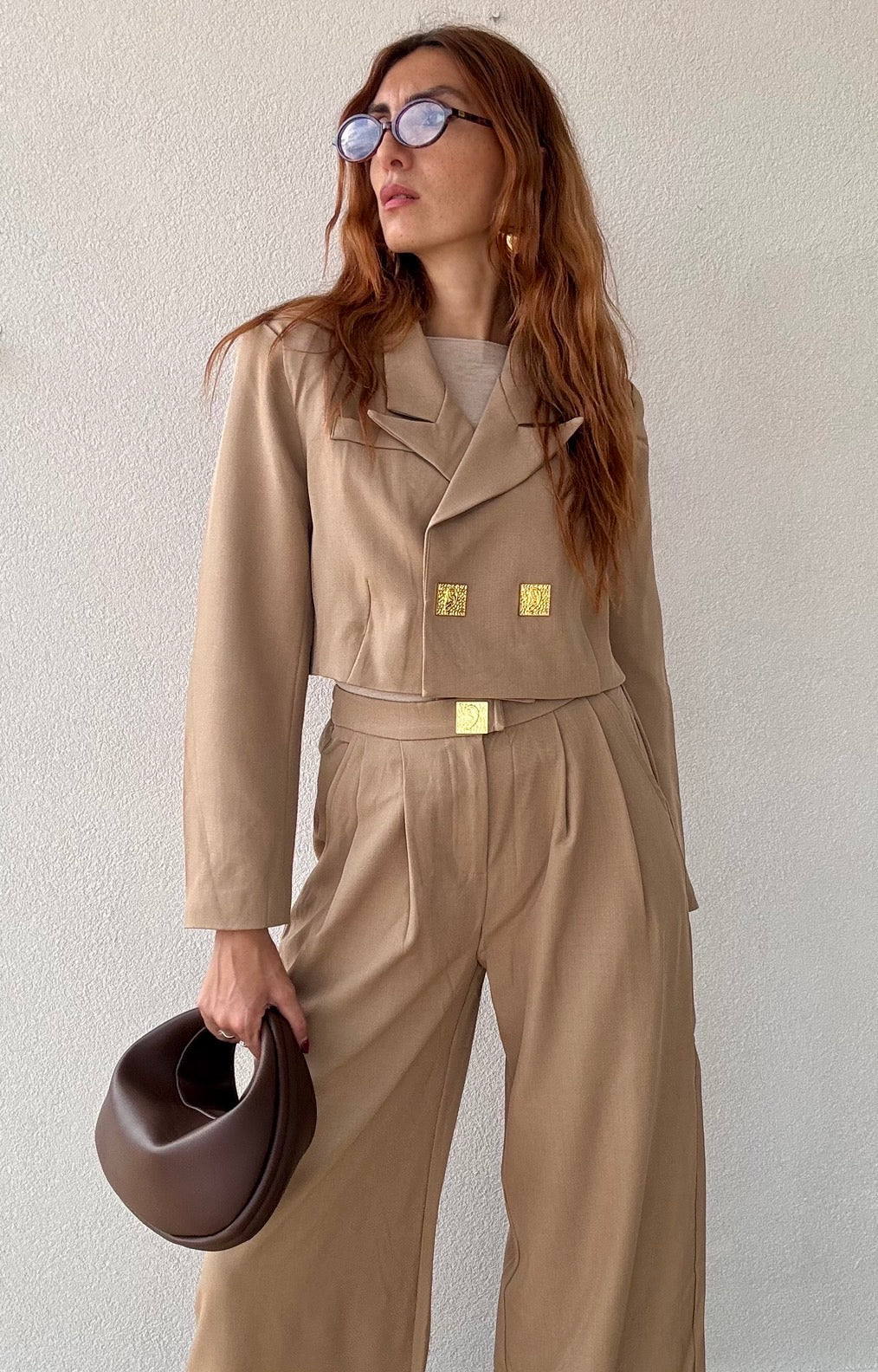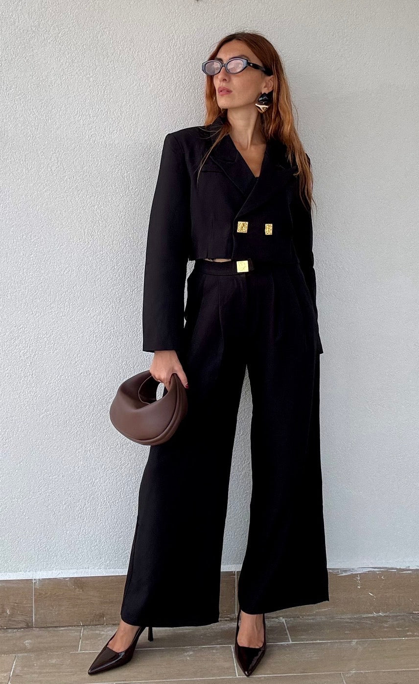 Il Tailleur Merida unisce eleganza e modernità con il suo pantalone a vita alta e il blazer crop impreziosito da bottoni dorati. Disponibile in due colori versatili e nelle taglie S/M e M/L, è la scelta perfetta per chi desidera uno stile raffinato e contemporaneo, ideale per ogni occasione in cui vuoi distinguerti con classe.