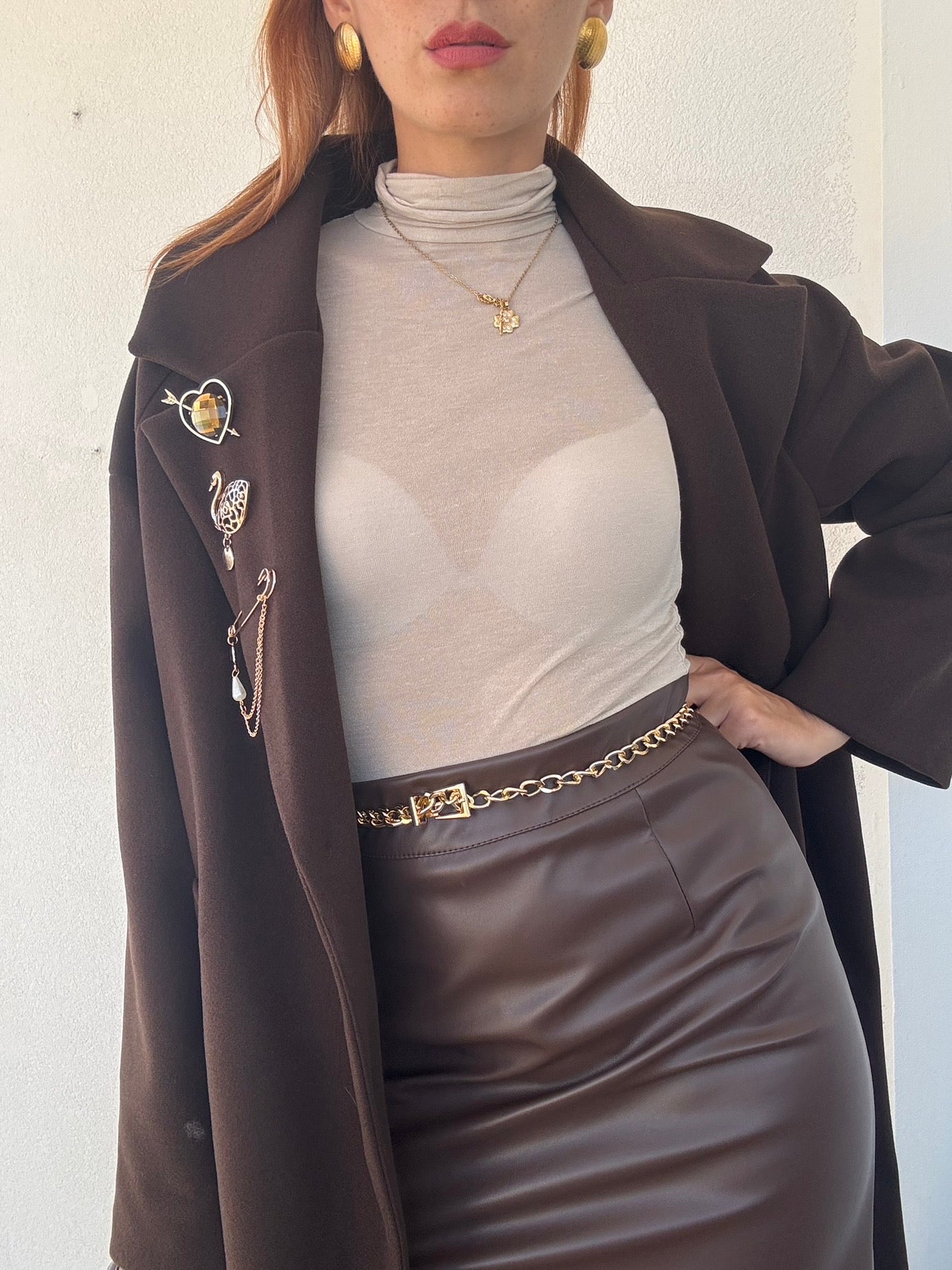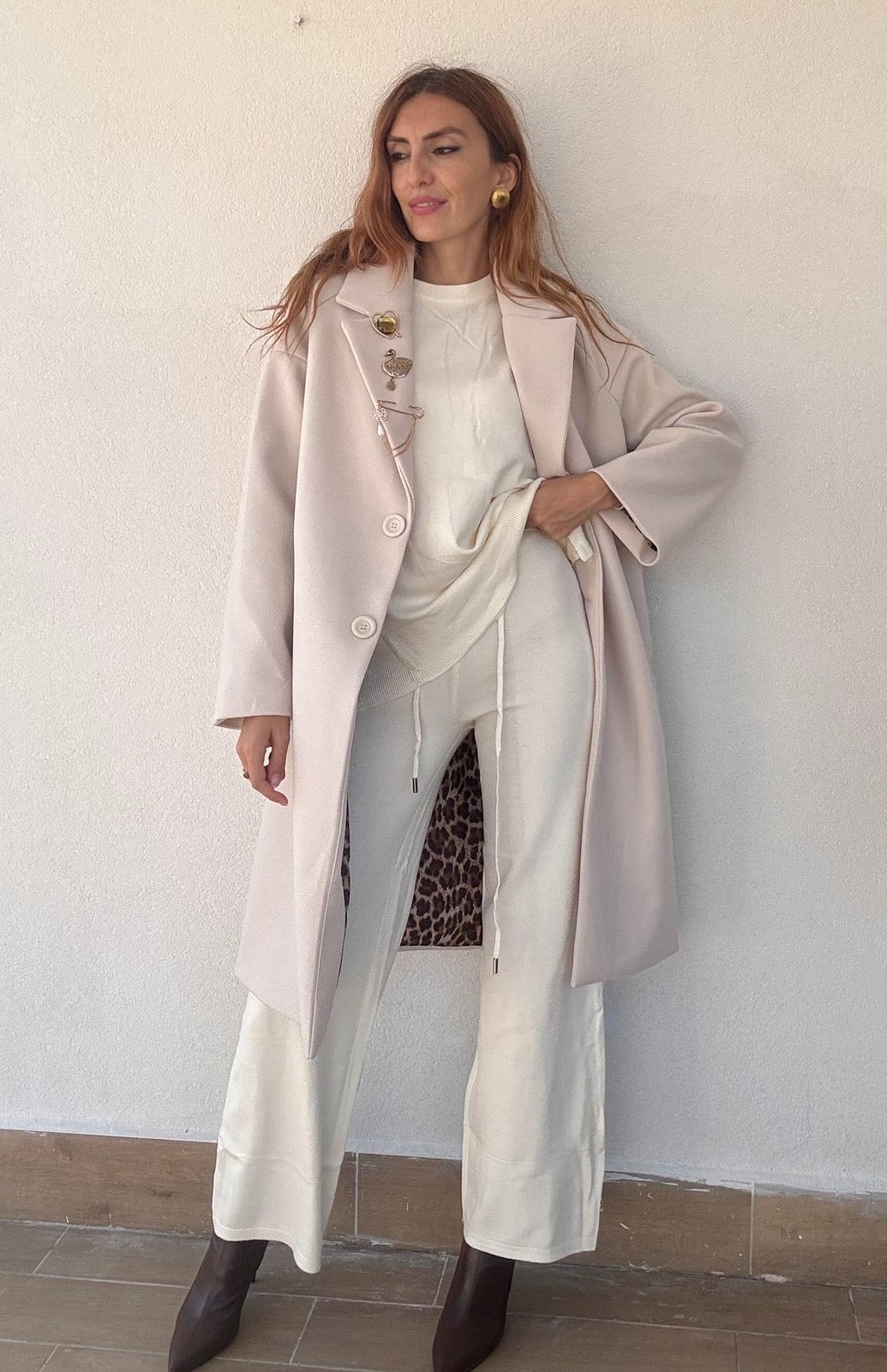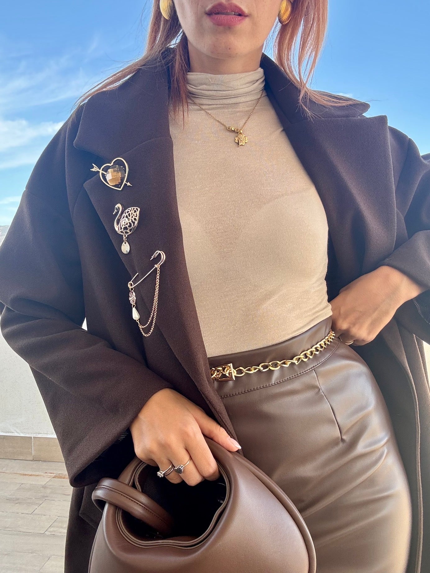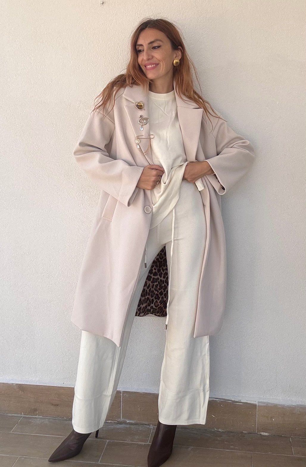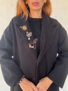 Questo cappotto oversize con spille applicate sul davanti unisce stile e comodità in un unico capo. La taglia unica è studiata per vestire perfettamente anche chi porta una L, garantendo una vestibilità versatile e confortevole. Aggiungi un tocco di originalità al tuo guardaroba con questo capo distintivo e pratico.