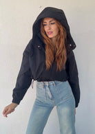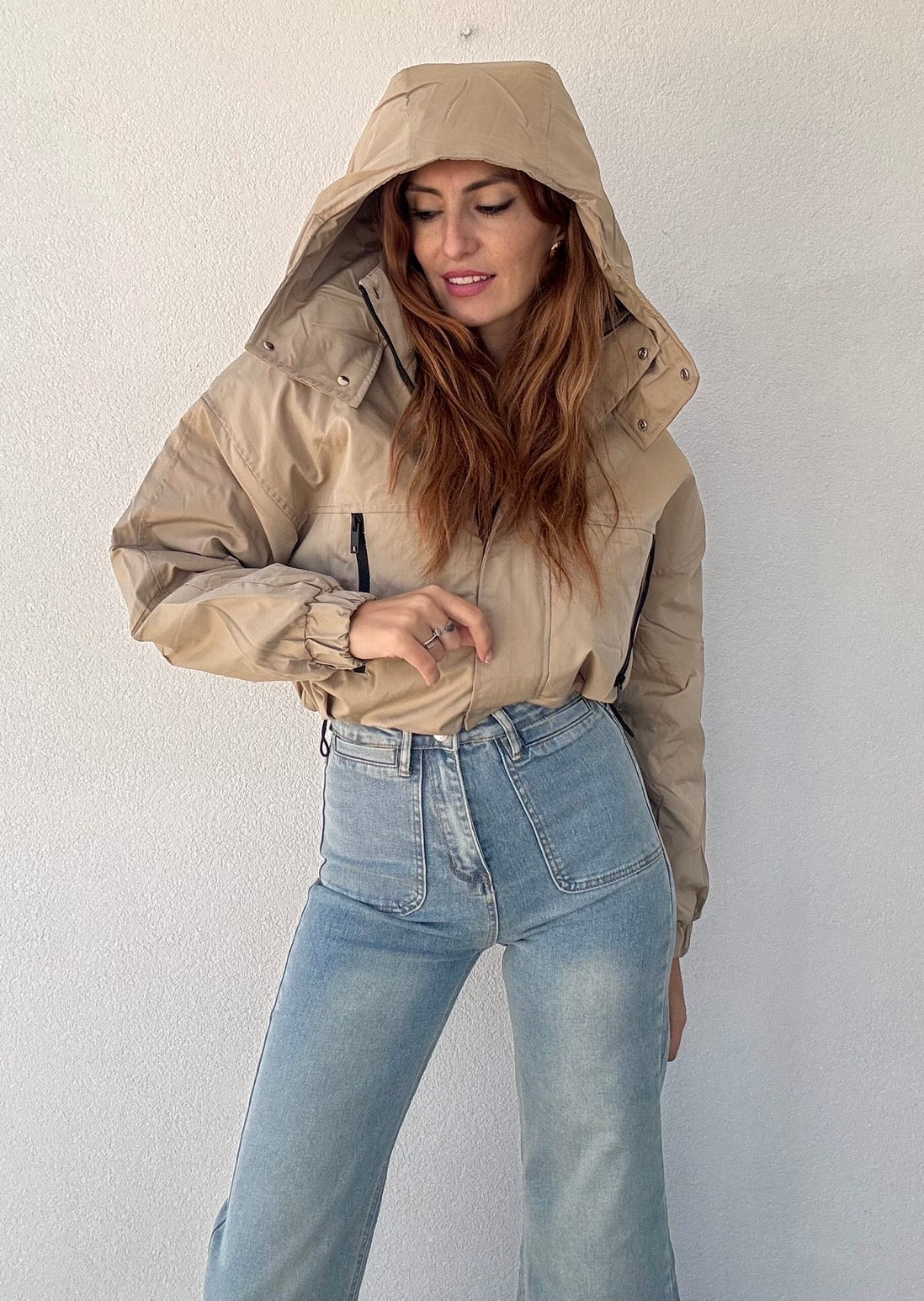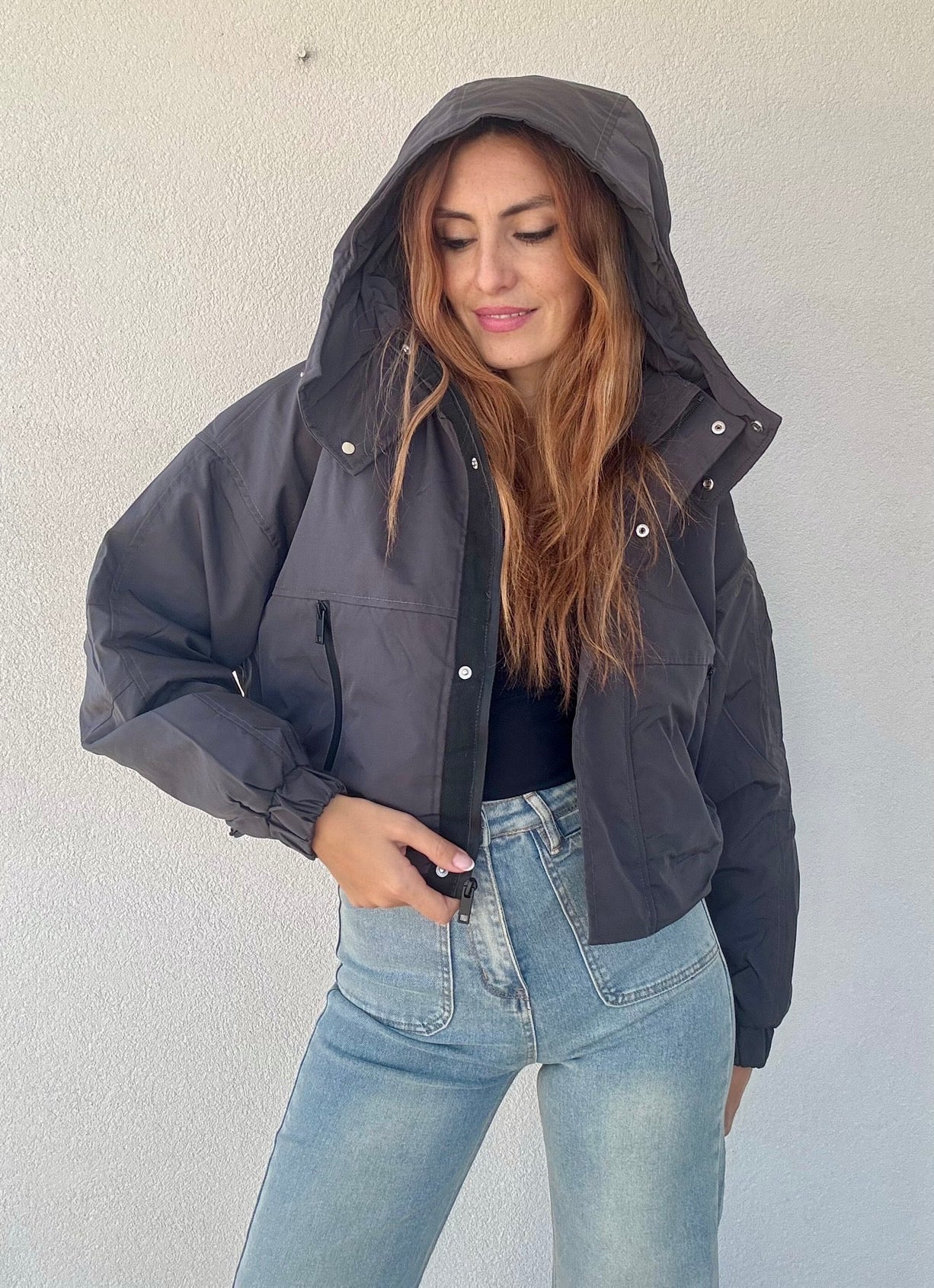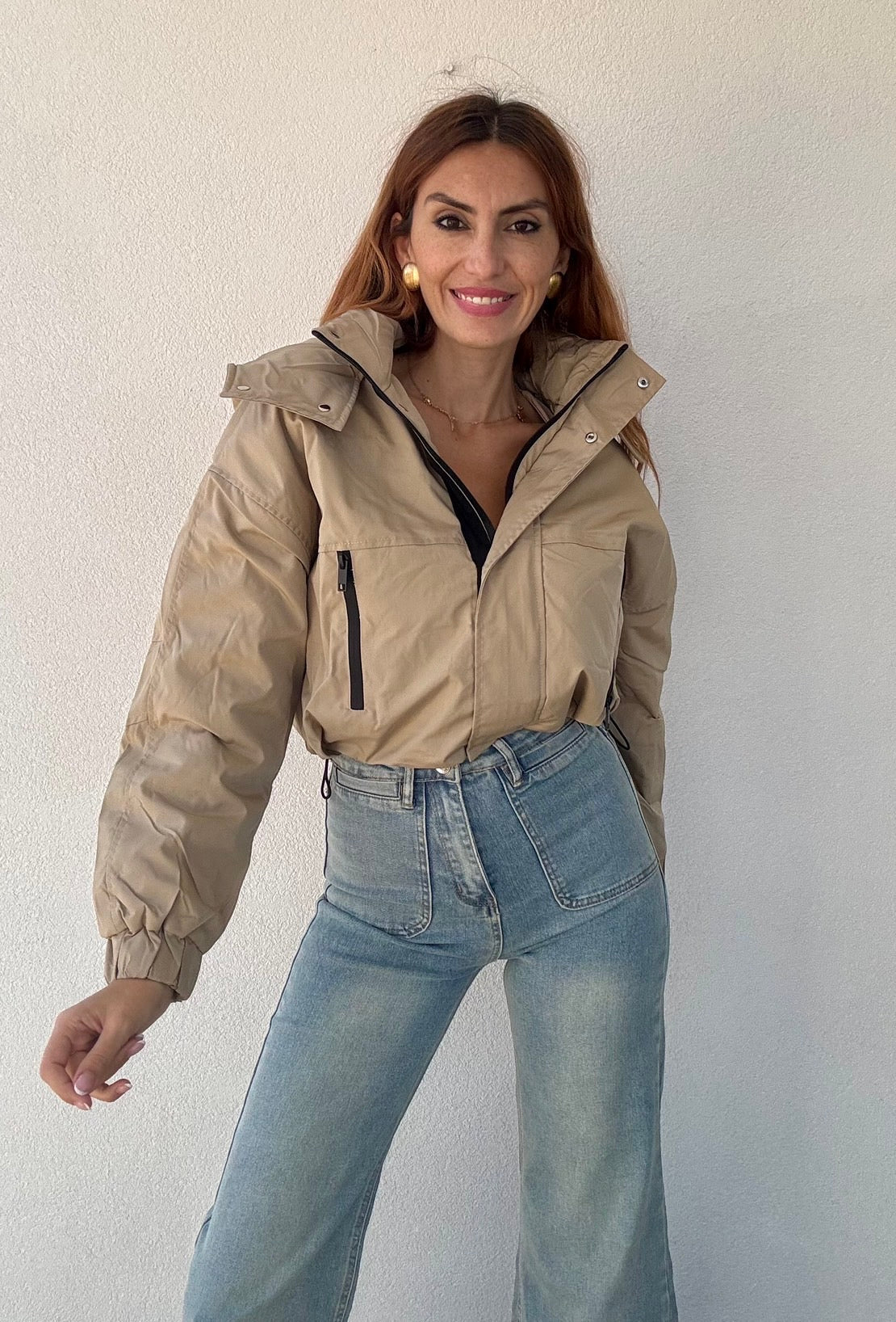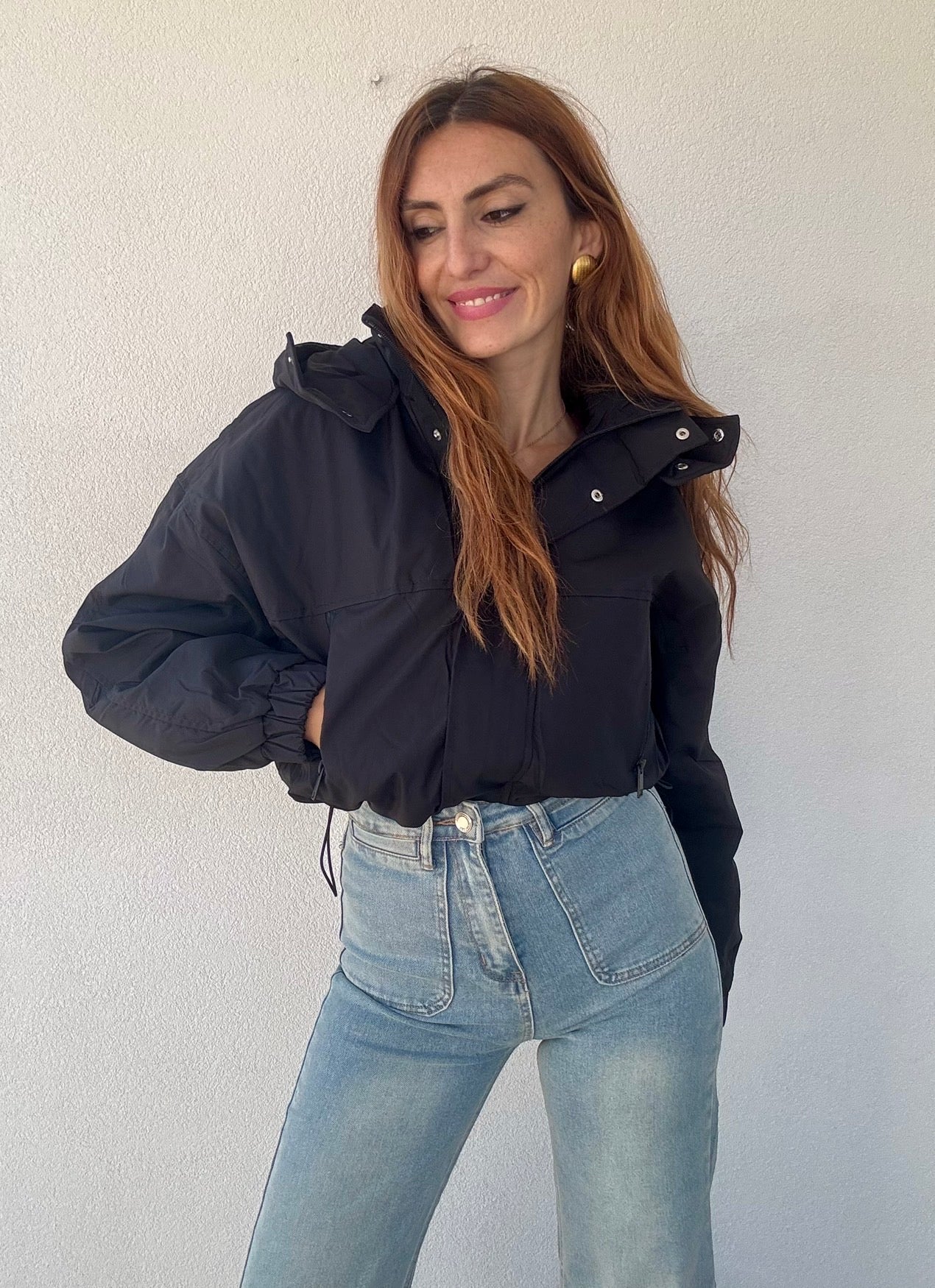 Il giubbinetto crop con cappuccio Tokyo offre calore e comfort ideali per ogni occasione. La chiusura con zip e bottoncini assicura una vestibilità pratica e sicura, mentre il design corto valorizza ogni outfit. Disponibile in tre colori e nelle taglie S/M e M/L, è la scelta perfetta per un look casual e versatile durante le giornate più fresche.