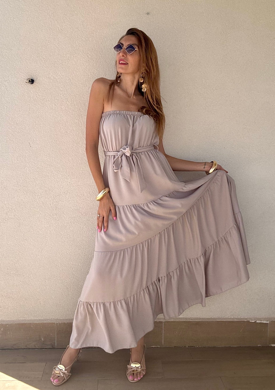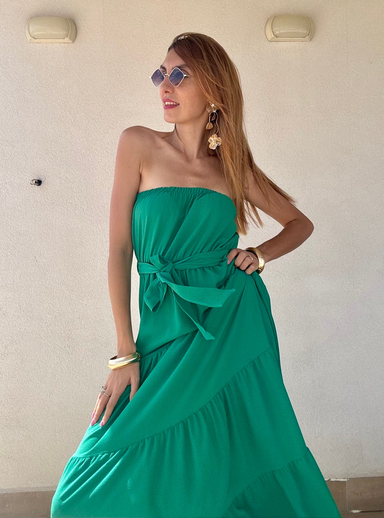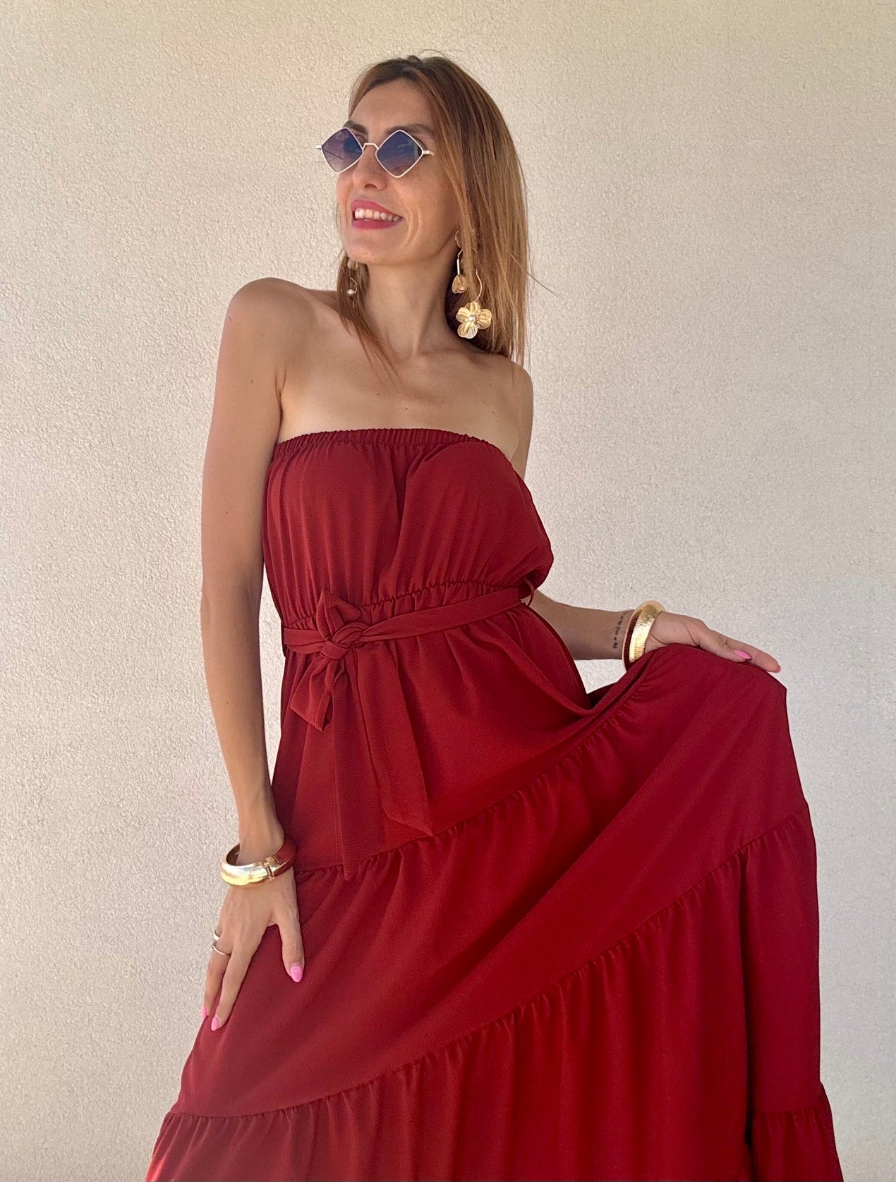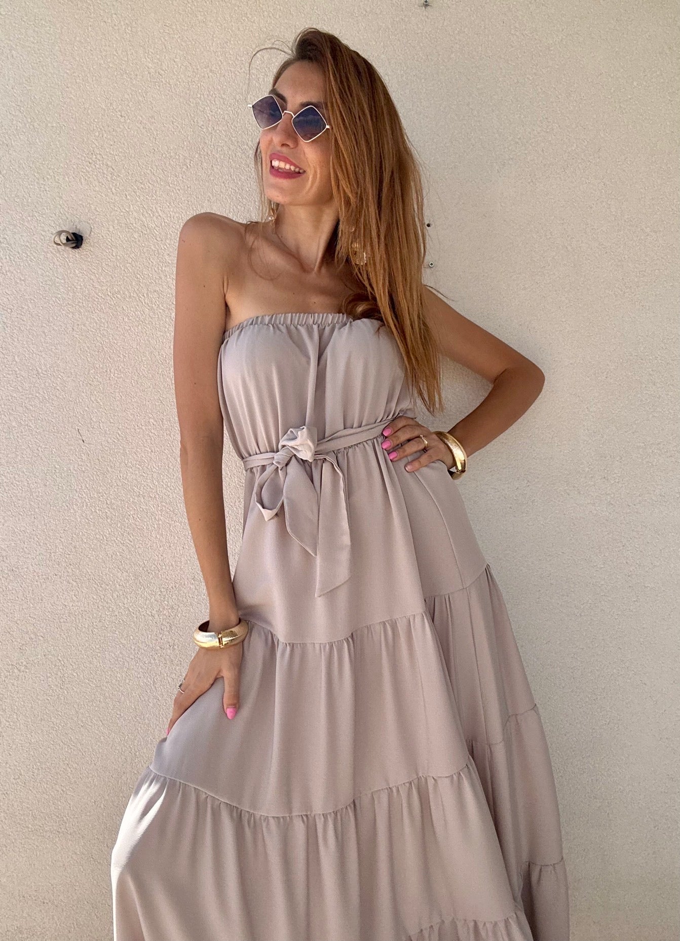 L'abito Soraya è un vestito lungo a fascia, caratterizzato da un elastico sul seno che garantisce comfort e sostegno. La cintura in vita valorizza la silhouette, creando un effetto elegante e femminile. Taglia unica, adatta fino a una L, perfetta per chi cerca stile e vestibilità in un unico capo. Ideale per occasioni speciali o per un look sofisticato e senza sforzo.