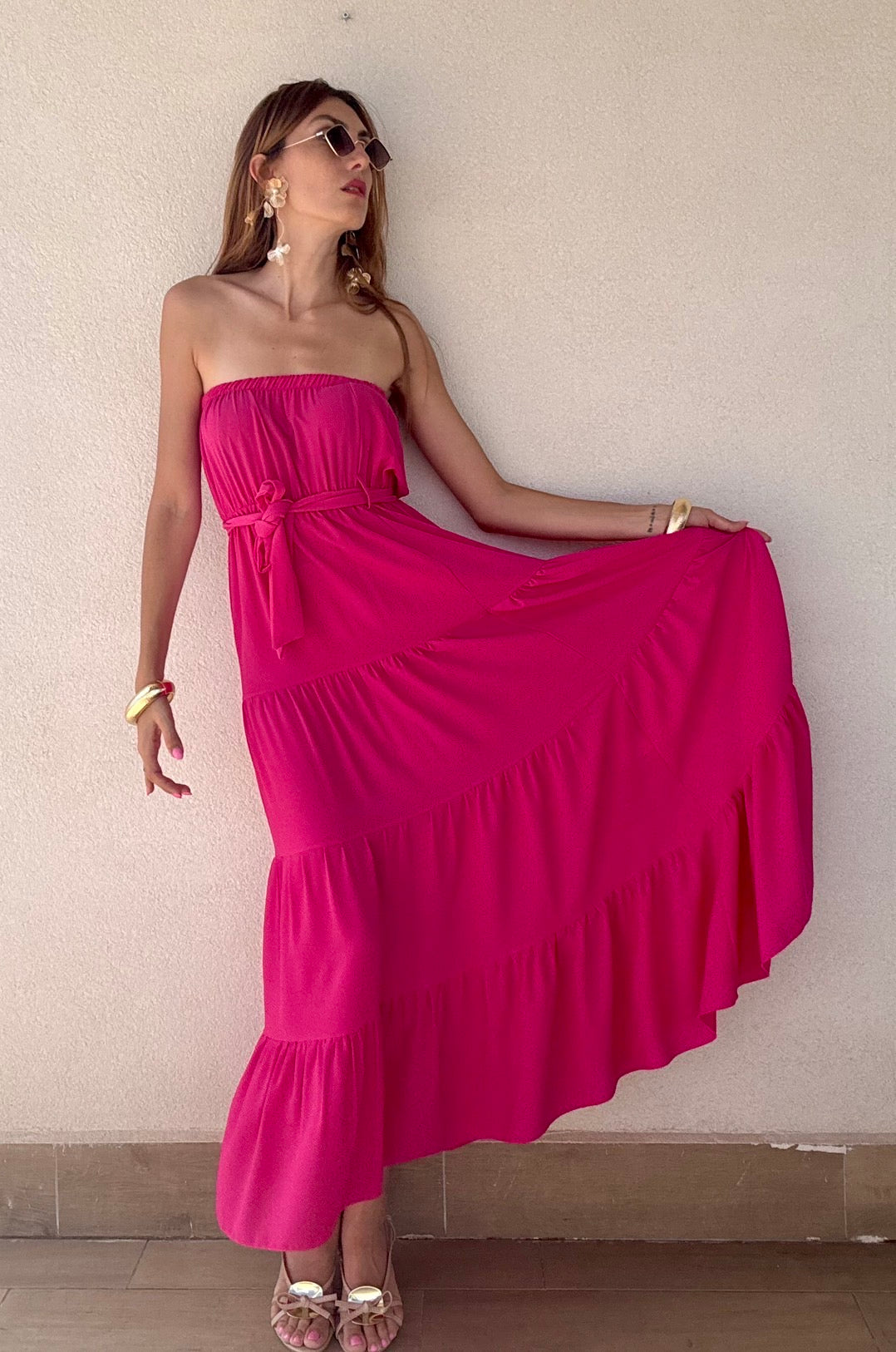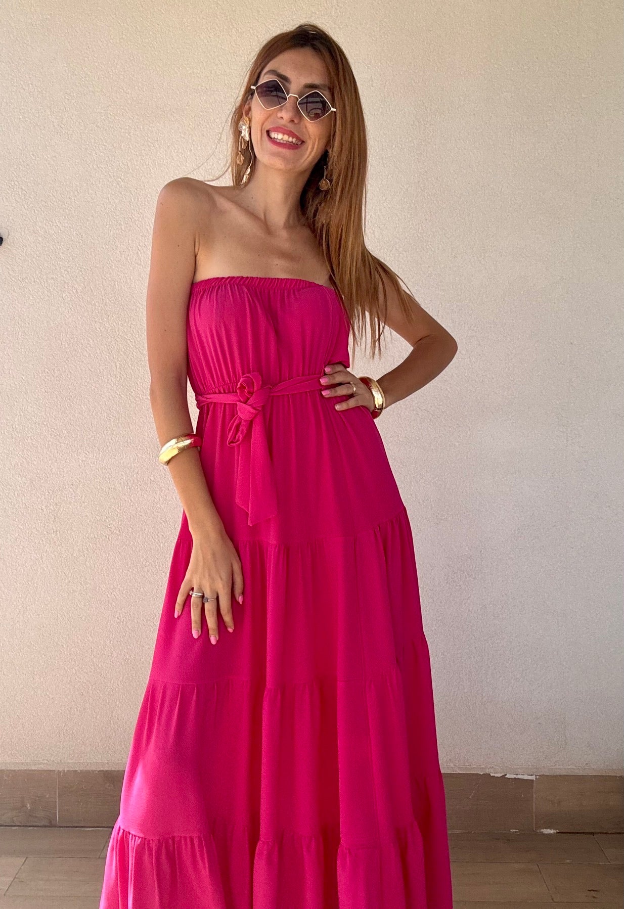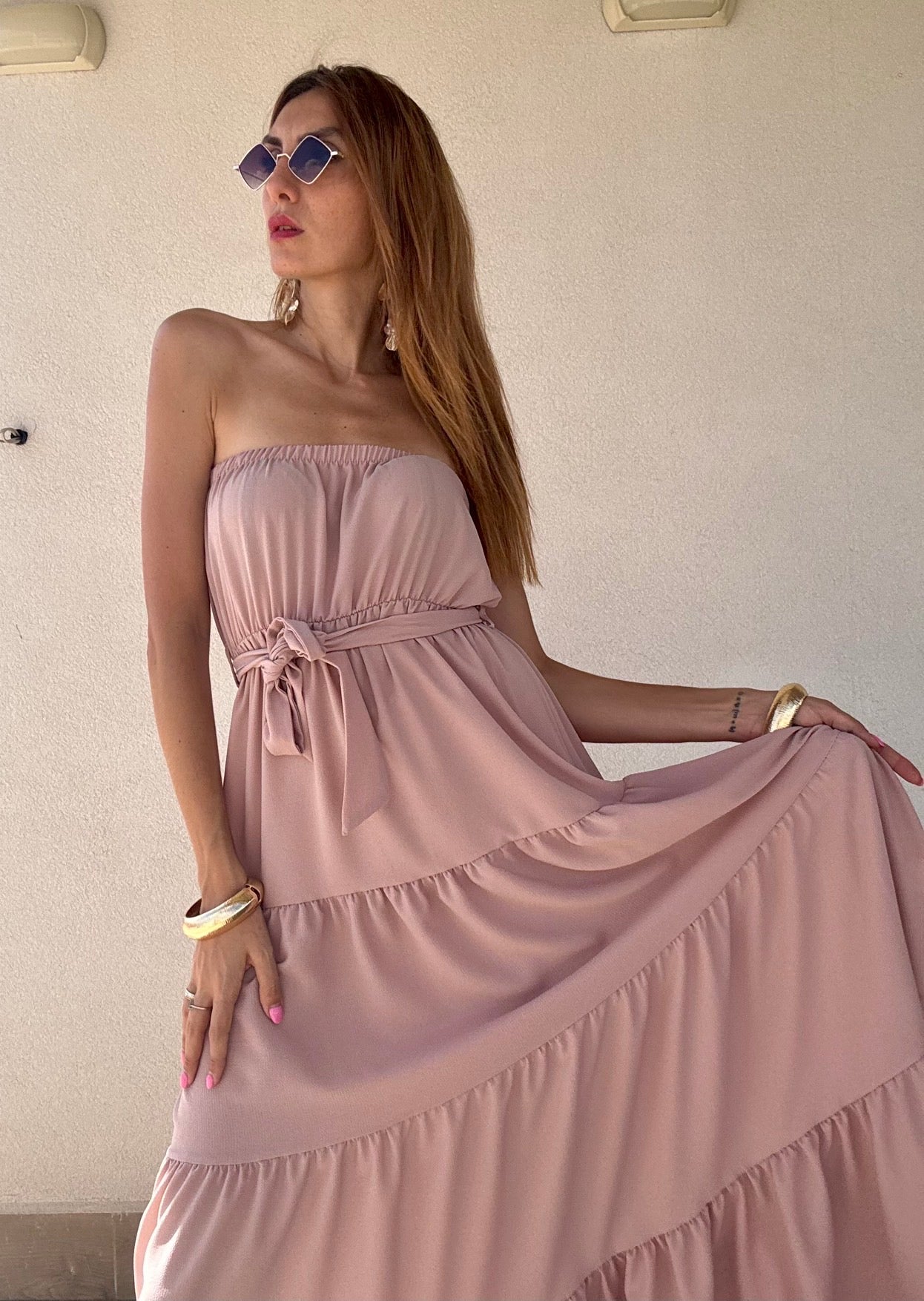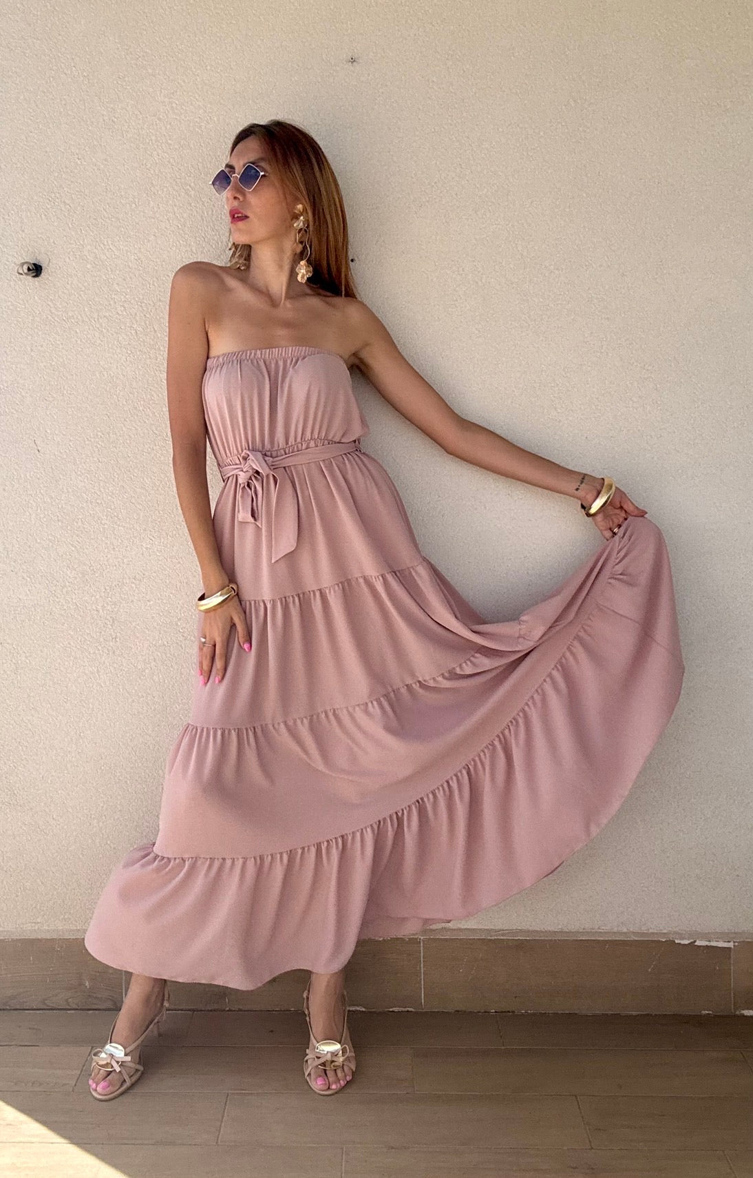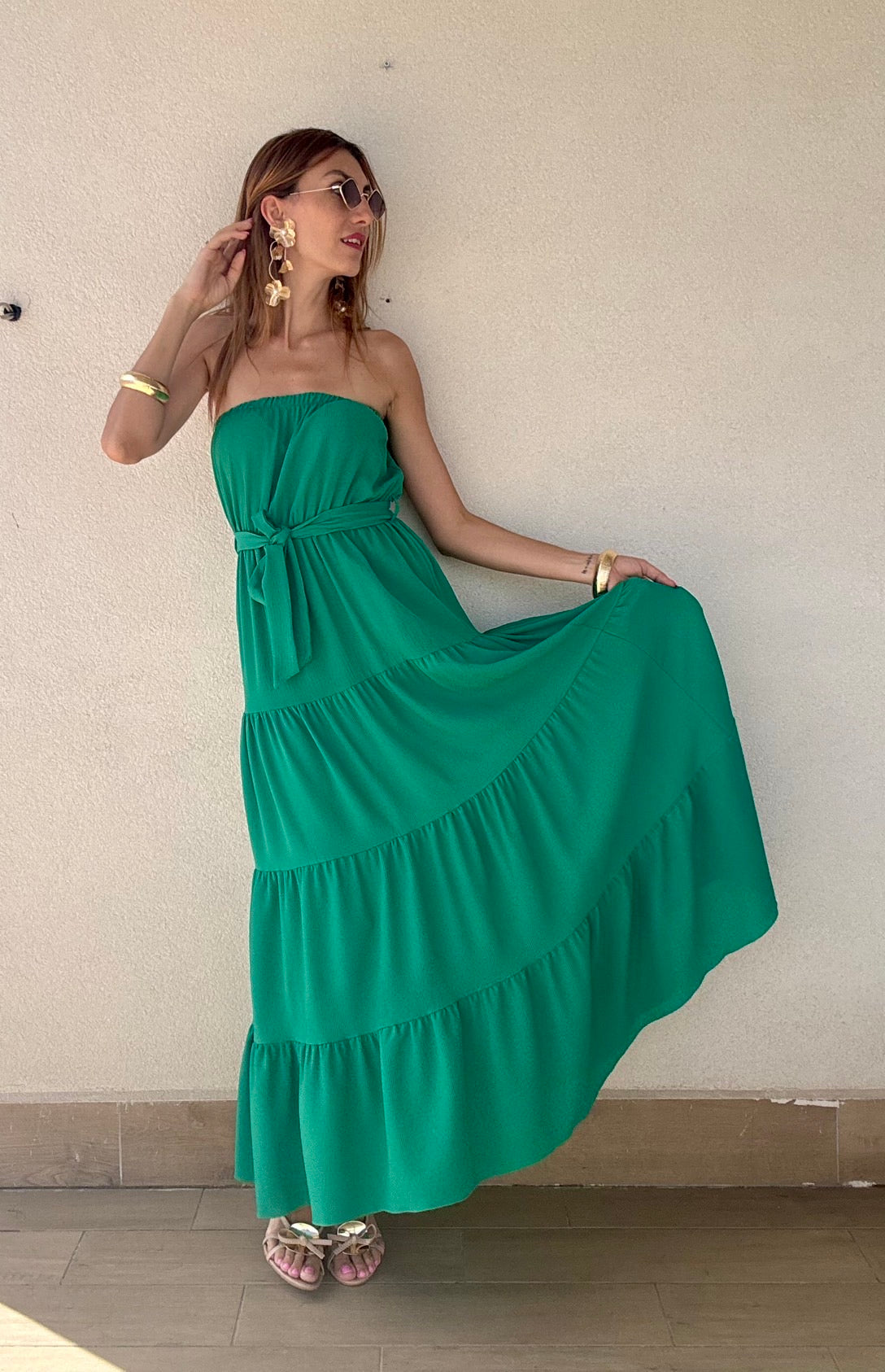 L'abito Soraya è un vestito lungo a fascia, caratterizzato da un elastico sul seno che garantisce comfort e sostegno. La cintura in vita valorizza la silhouette, creando un effetto elegante e femminile. Taglia unica, adatta fino a una L, perfetta per chi cerca stile e vestibilità in un unico capo. Ideale per occasioni speciali o per un look sofisticato e senza sforzo.