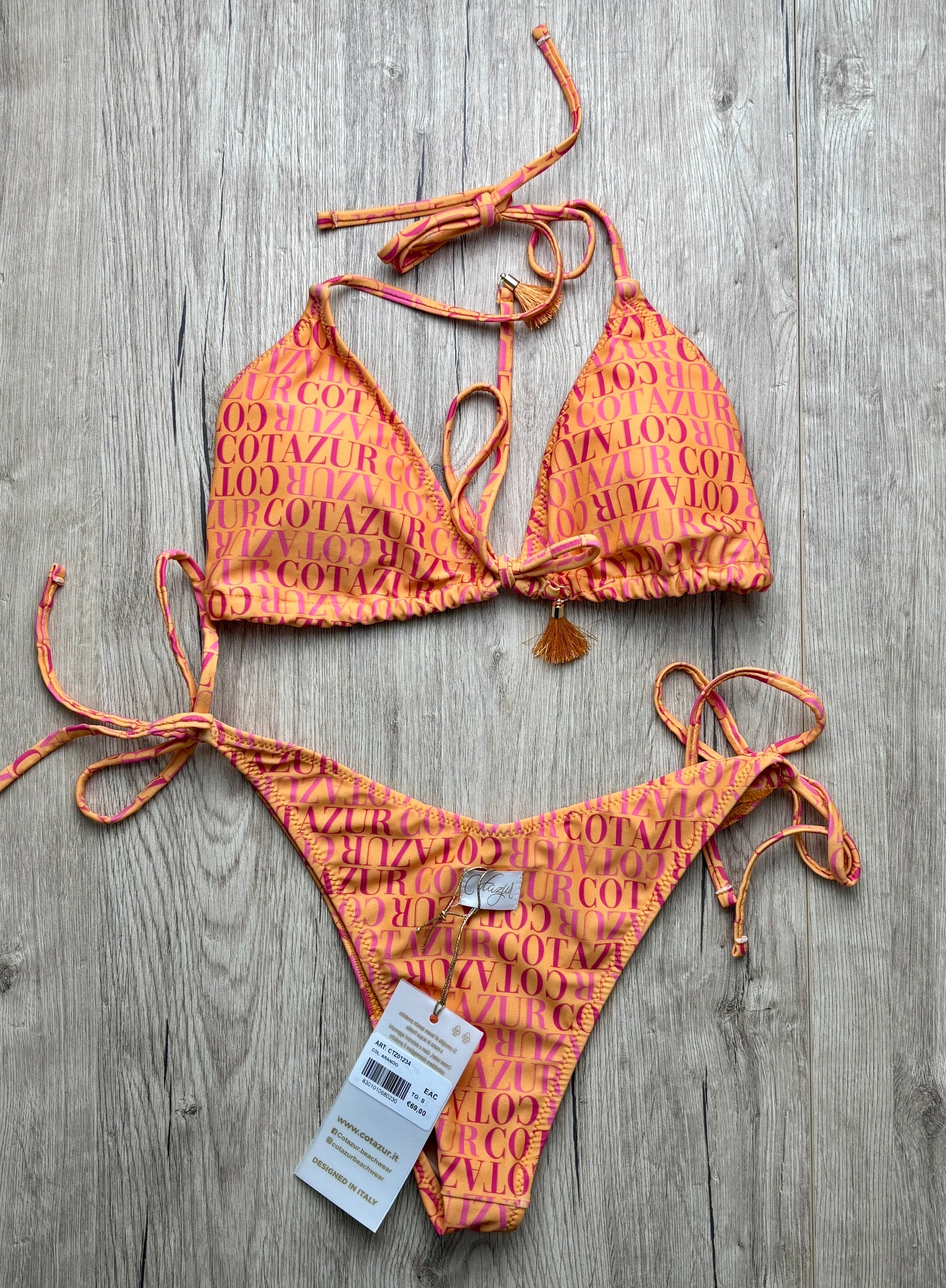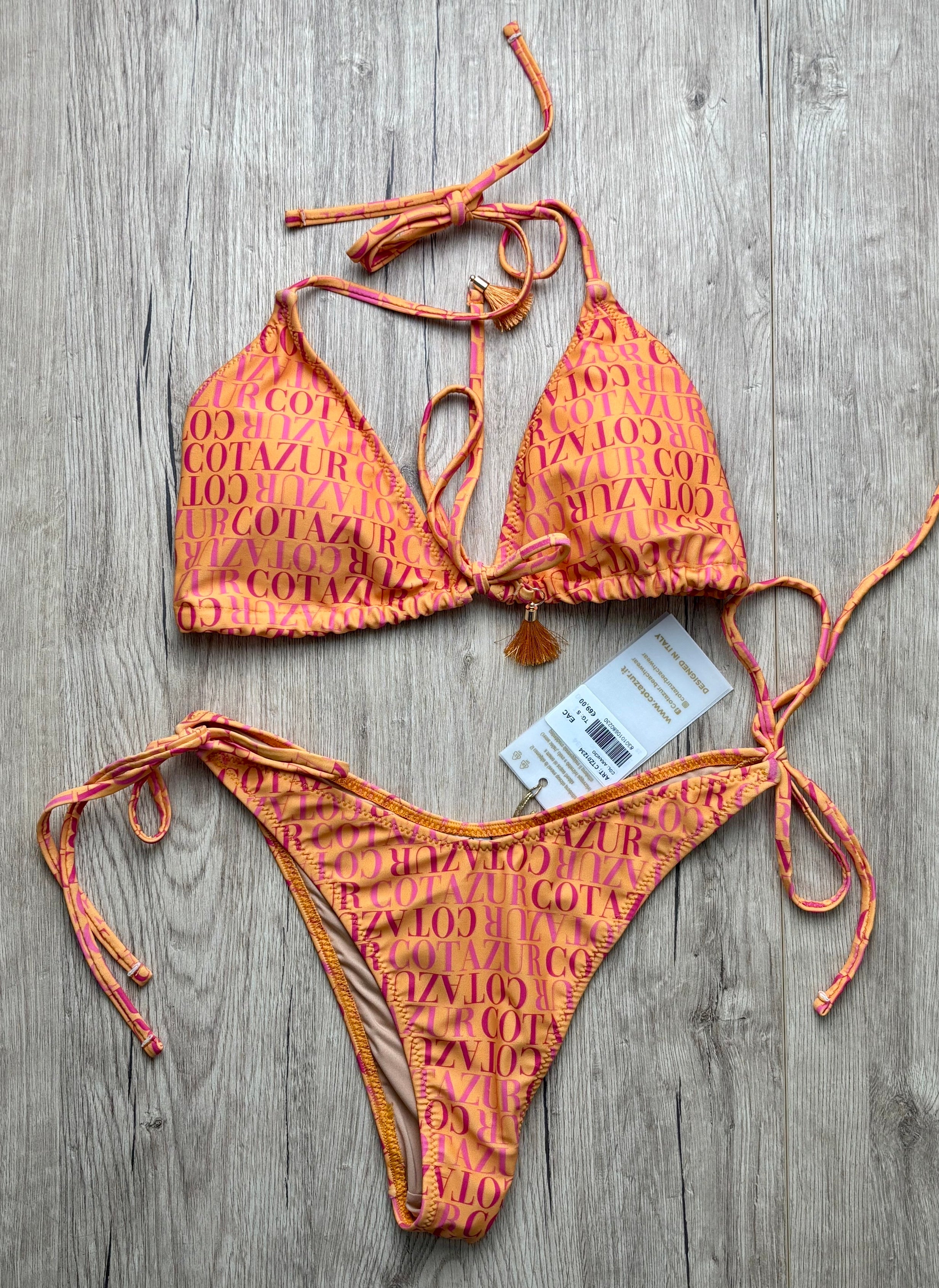 Esaltate la vostra bellezza con il nostro Bikini marchio COTAZUR, dotato di slip e reggiseno regolabile con lacci, perfetto per adattarsi alle vostre curve. I nostri loghi a contrasto aggiungono un tocco di stile unico. Mostratevi sicure e radianti grazie al nostro Bikini.