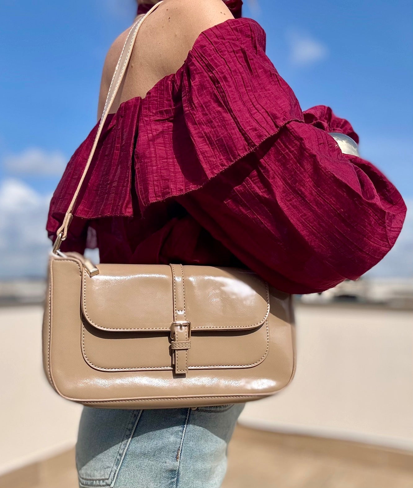 La borsetta simil pelle lucida REBE è perfetta per ogni occasione. Con una pratica tracolla e una misura di circa 26cm, potrai portare con te tutto il necessario in modo elegante e comodo. Aggiungi un tocco di stile al tuo outfit con la borsa REBE.