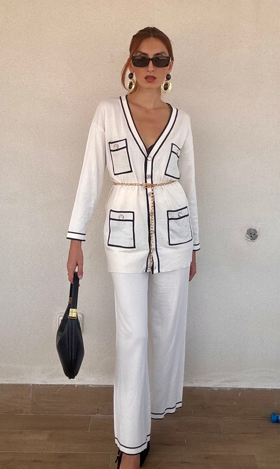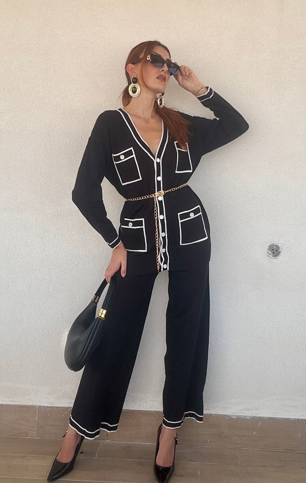 Il Coordinato Giada unisce eleganza e comfort con pantalone e cardigan coordinati, rifiniti da profili a contrasto che valorizzano ogni dettaglio. Completo di bottoncini e finte tasche per un tocco raffinato, è disponibile in due colori versatili. La taglia unica veste perfettamente fino a una L, garantendo una vestibilità comoda e femminile. Ideale per chi cerca stile e praticità in un unico capo.