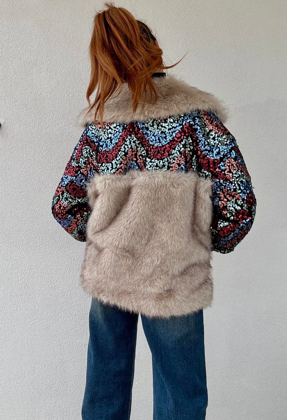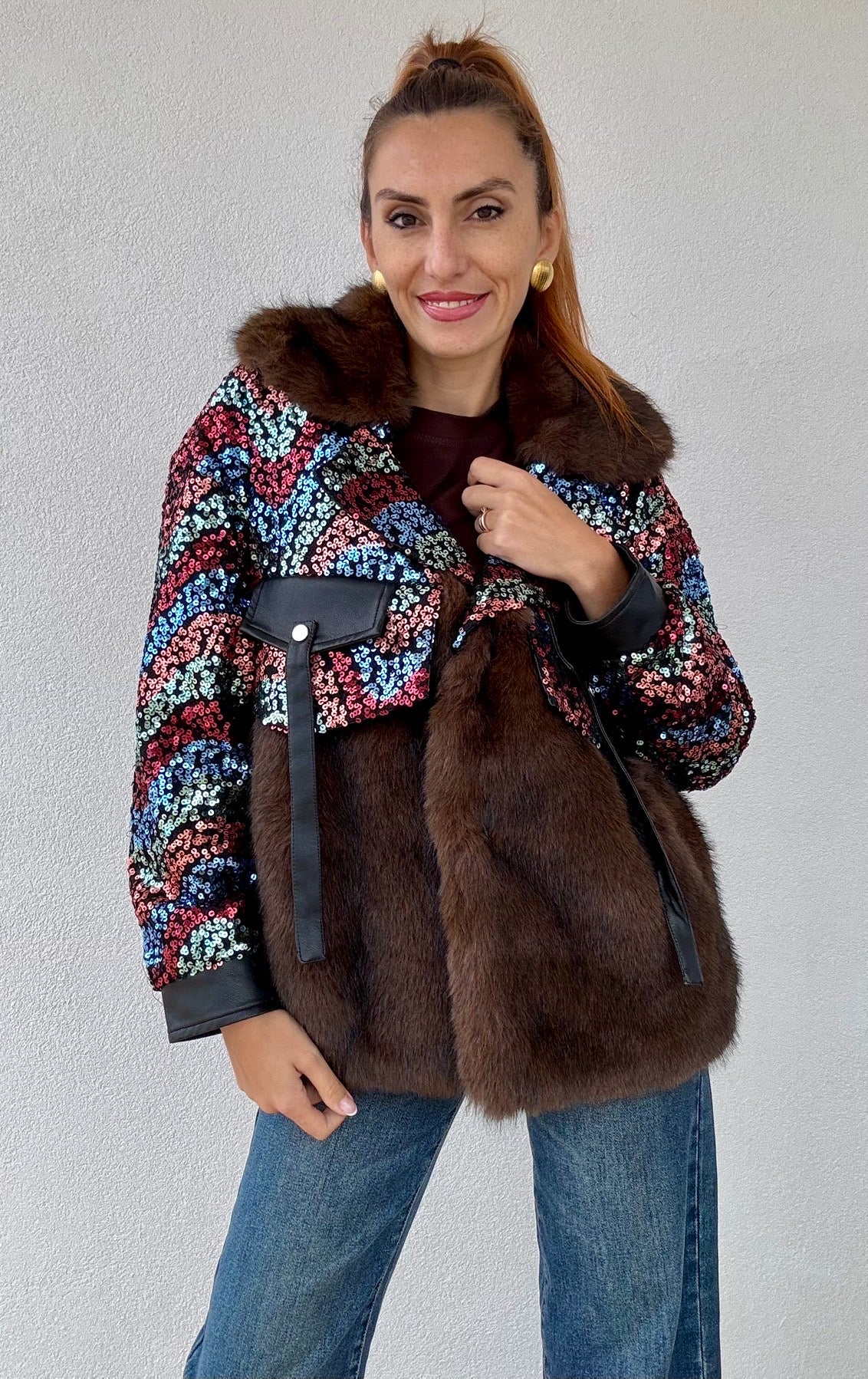 Scopri la Pelliccia Star, un capo eco arricchito da inserti in paillettes colorate che donano un tocco di brillantezza unico. La taglia unica si adatta perfettamente fino a una L, garantendo comfort e stile. Morbida e molto calda, è l’ideale per affrontare le giornate fredde con eleganza. Disponibile in due colori distinti per scegliere il look che più ti rappresenta.