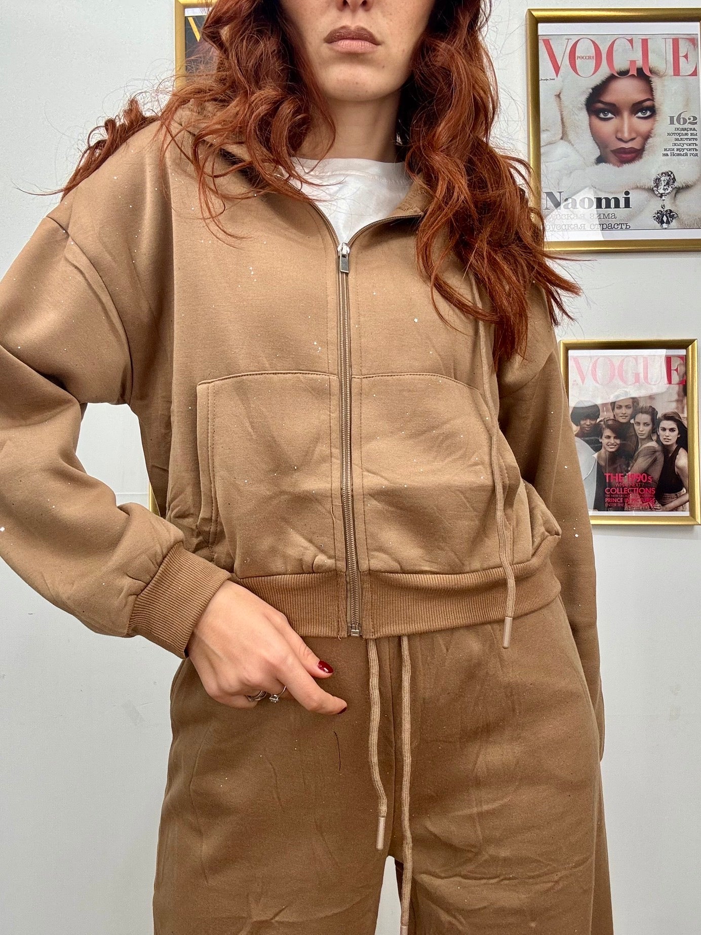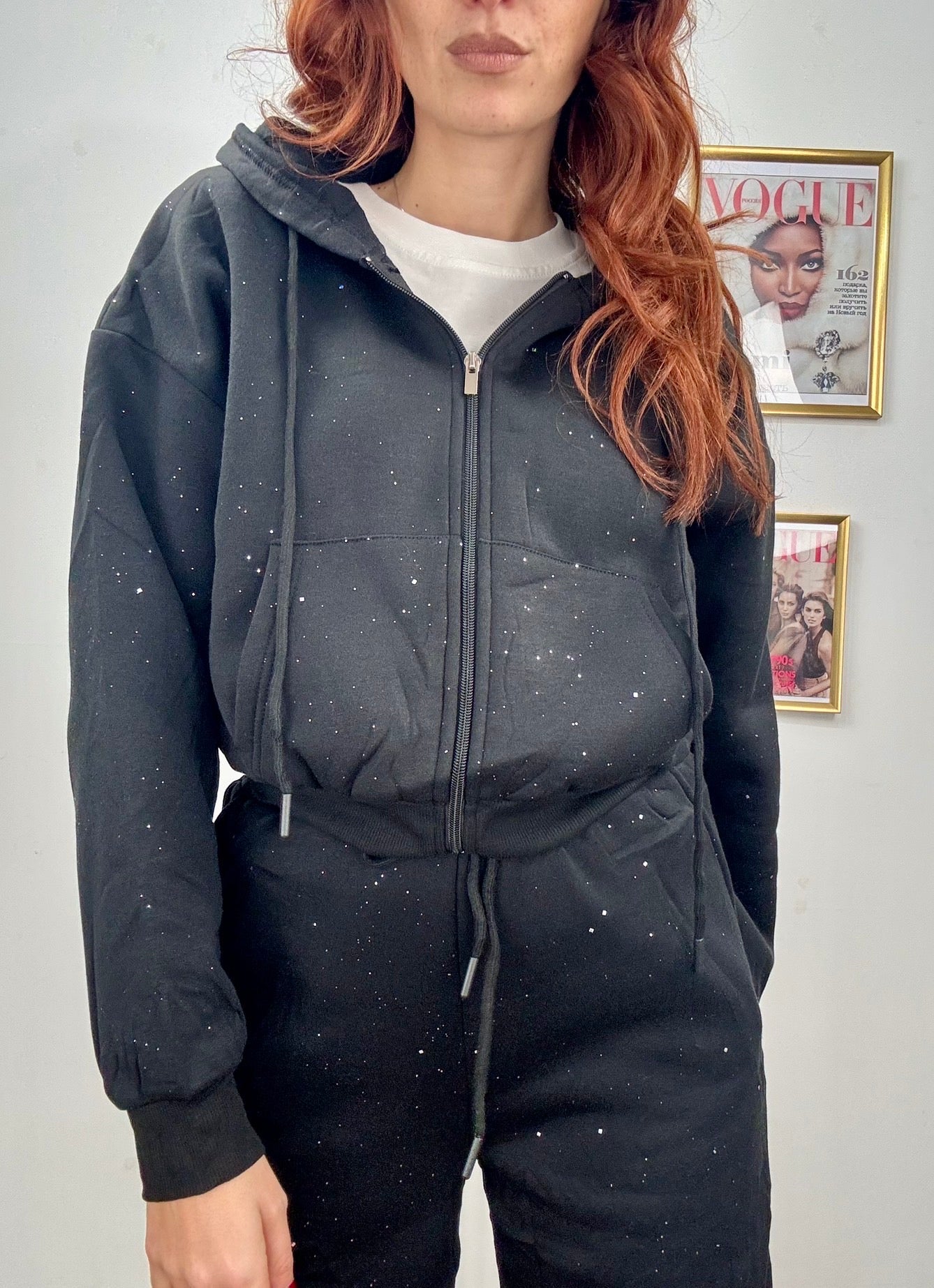 Scopri la nostra esclusiva tuta felpata che unisce comfort e glamour. Realizzata in morbido tessuto felpato, è impreziosita da delicati microstrass che catturano la luce con eleganza. La vestibilità ampia e avvolgente la rende perfetta per chi ama uno stile casual ma sofisticato. Disponibile in tre colori affascinanti e nelle comode taglie doppie S/M e L/XL, è il capo ideale per chi non vuole rinunciare al comfort senza sacrificare l'originalità.