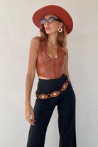 Scopri il corpetto rock in simil pelle, dal design audace con stringhe regolabili che valorizzano la silhouette. Lo scollo all'americana aggiunge un tocco di grinta e stile unico. Disponibile in due colori vibranti, è una taglia unica che veste perfettamente fino alla 44, combinando comfort e carattere per un look deciso e contemporaneo.