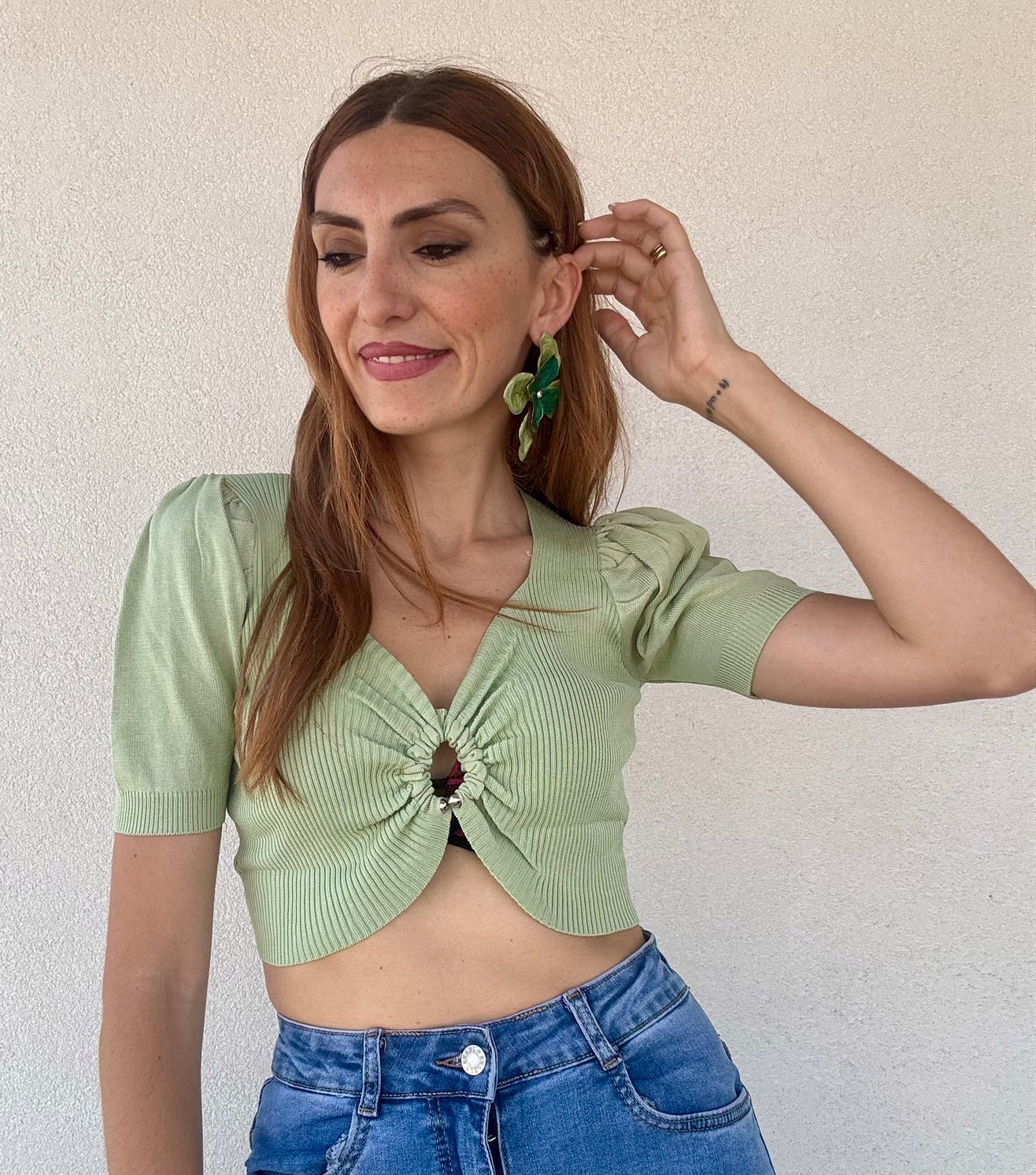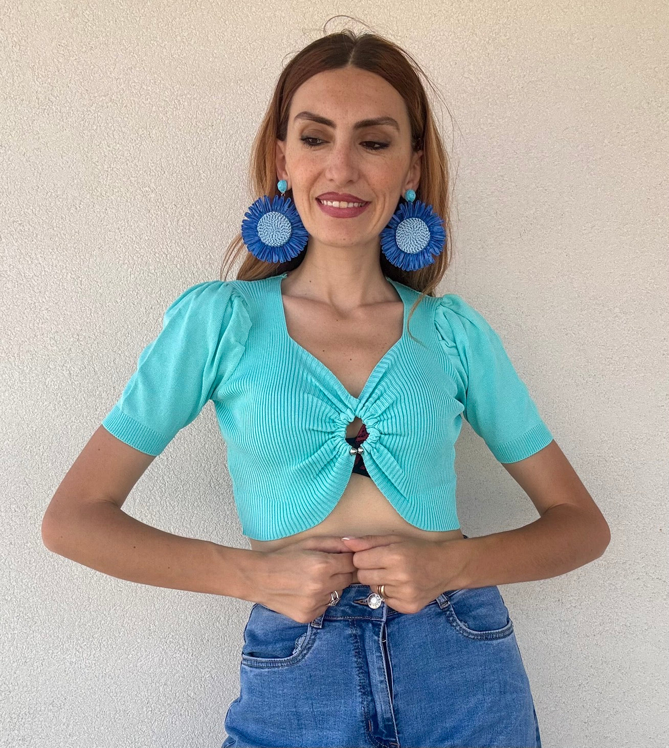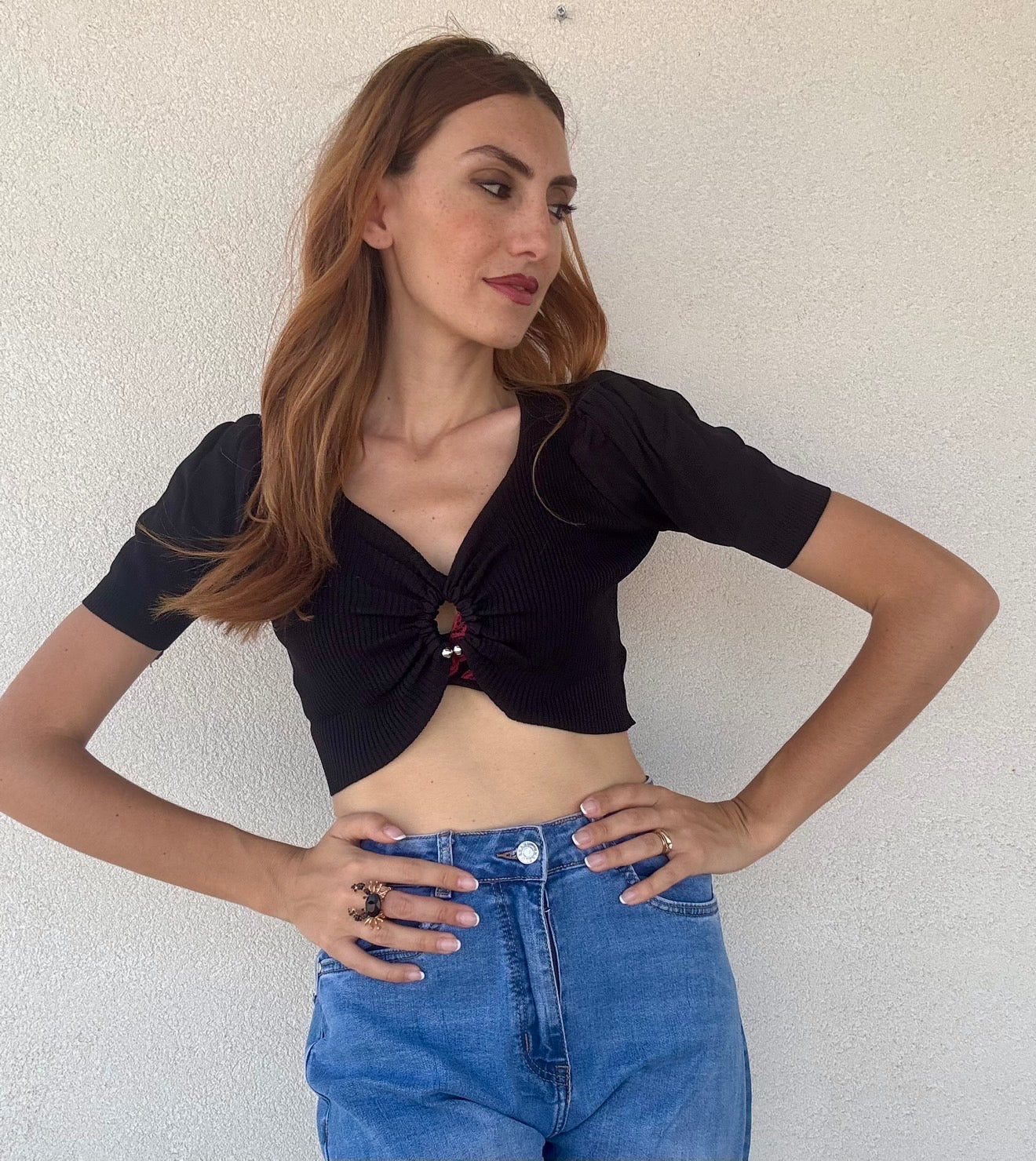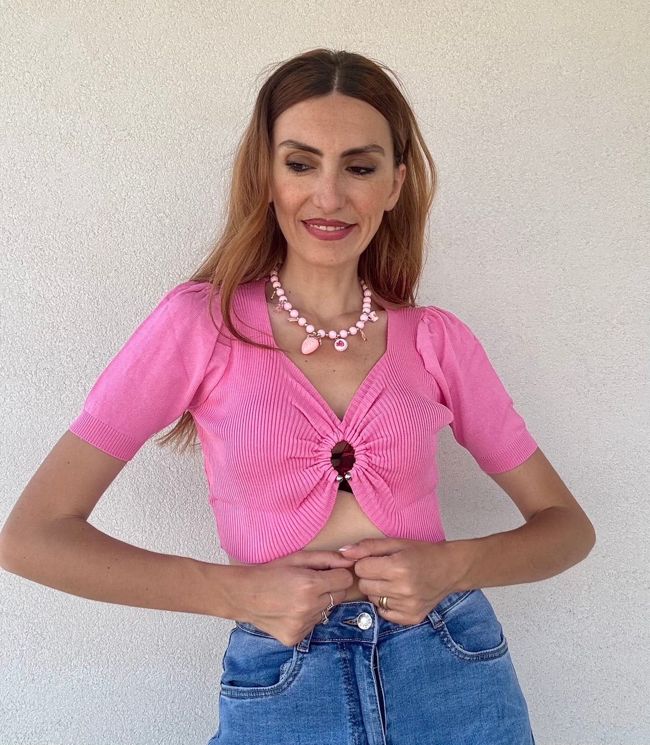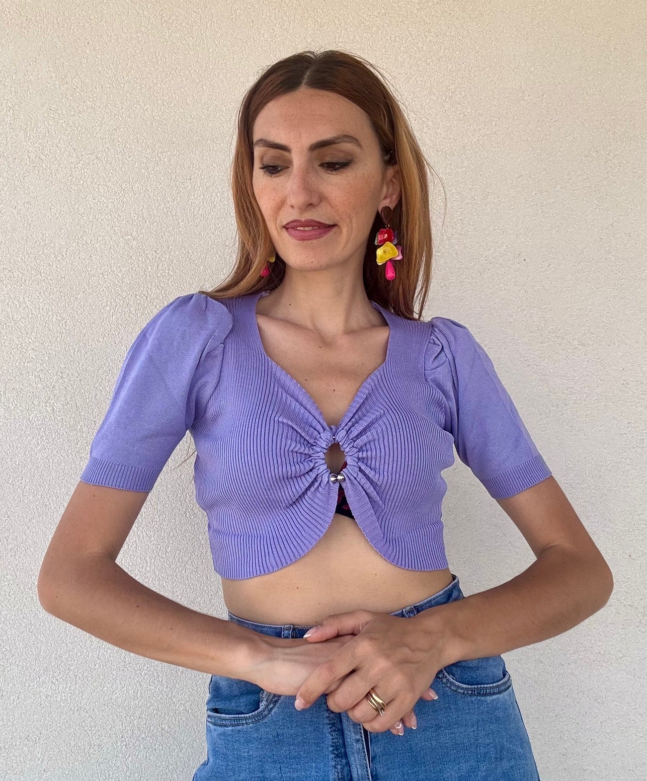 Questa maglia mezza manica con elegante anello al seno unisce stile e comfort in un unico capo. Realizzata in morbido misto cotone, è ideale per chi cerca una vestibilità versatile: taglia unica adatta fino alla L. Disponibile in sei colori, è perfetta per arricchire il tuo guardaroba con un tocco di originalità e praticità.