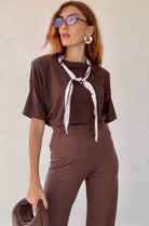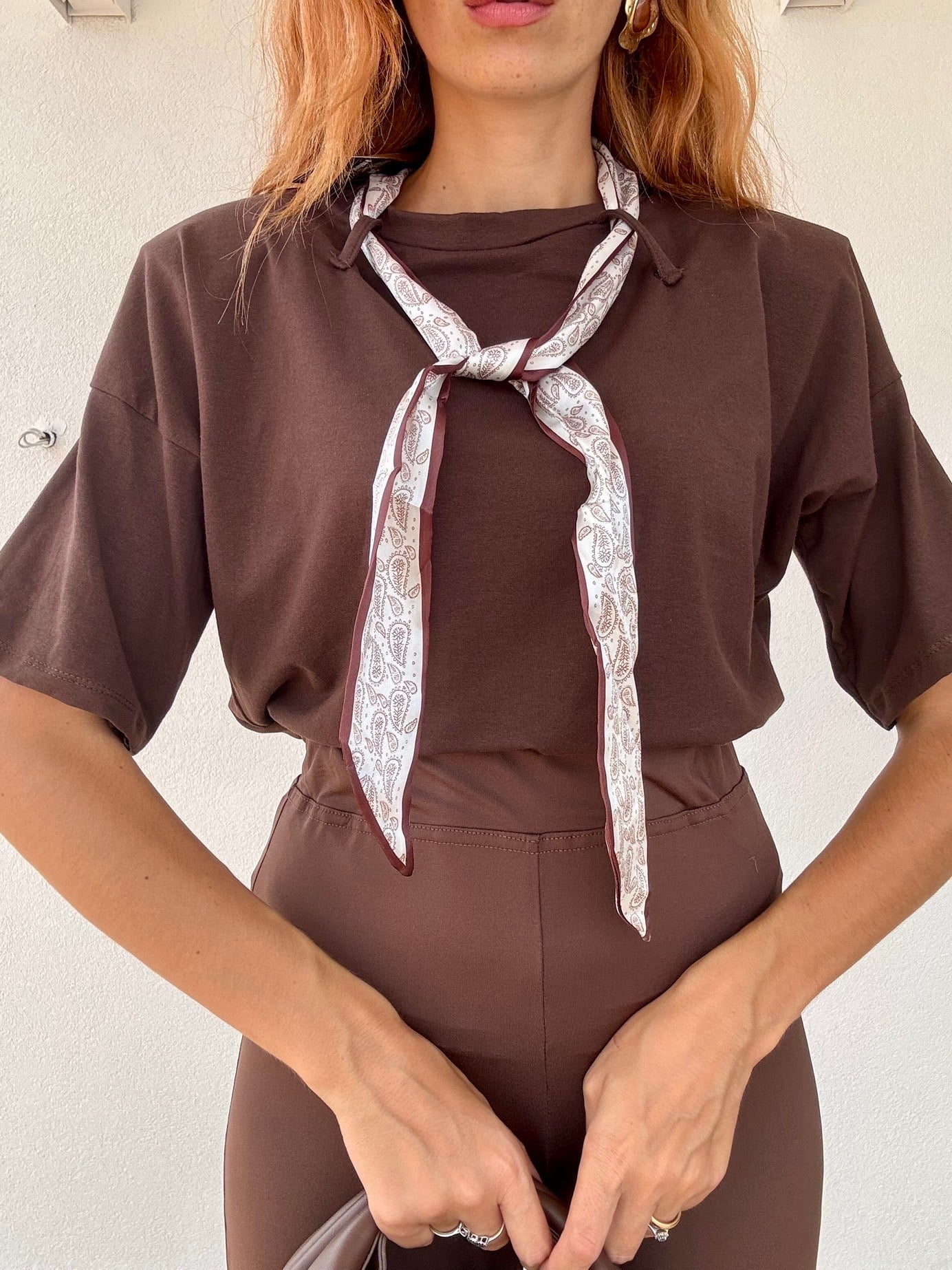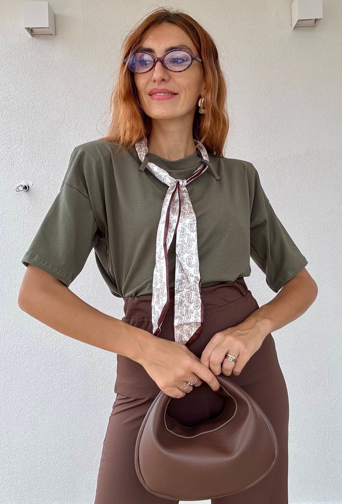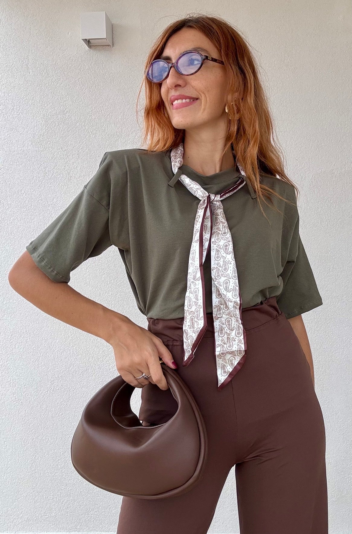 Questa shirt con spalline, arricchita da un elegante foulard al collo, unisce stile e comfort in un unico capo versatile. La taglia unica è studiata per vestire perfettamente fino a una L, garantendo una vestibilità comoda e femminile. Disponibile in quattro colori trendy, è l'ideale per aggiungere un tocco di classe a qualsiasi outfit. Scegli la qualità e il design per sentirti sempre al top.