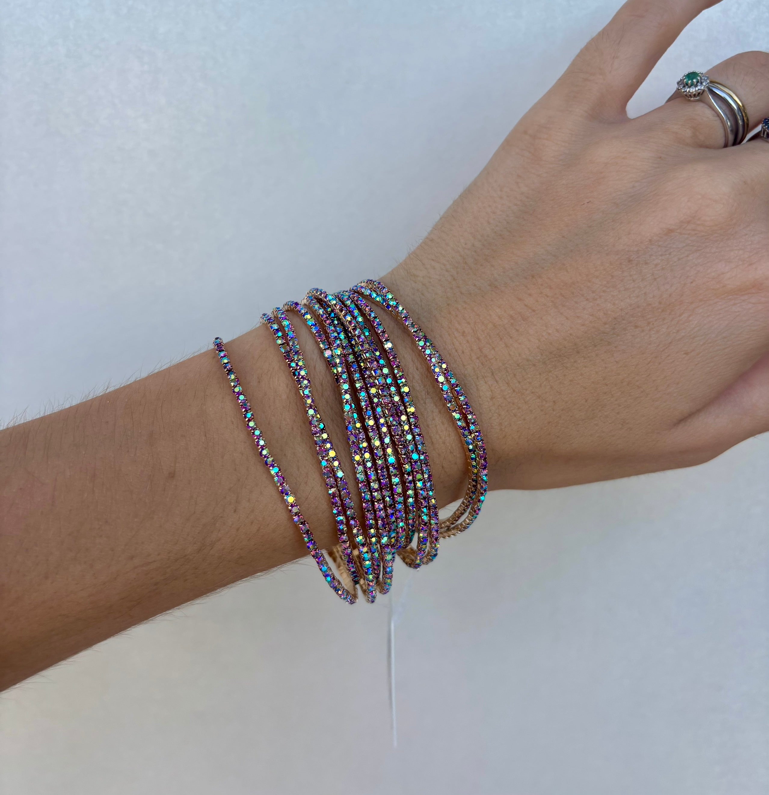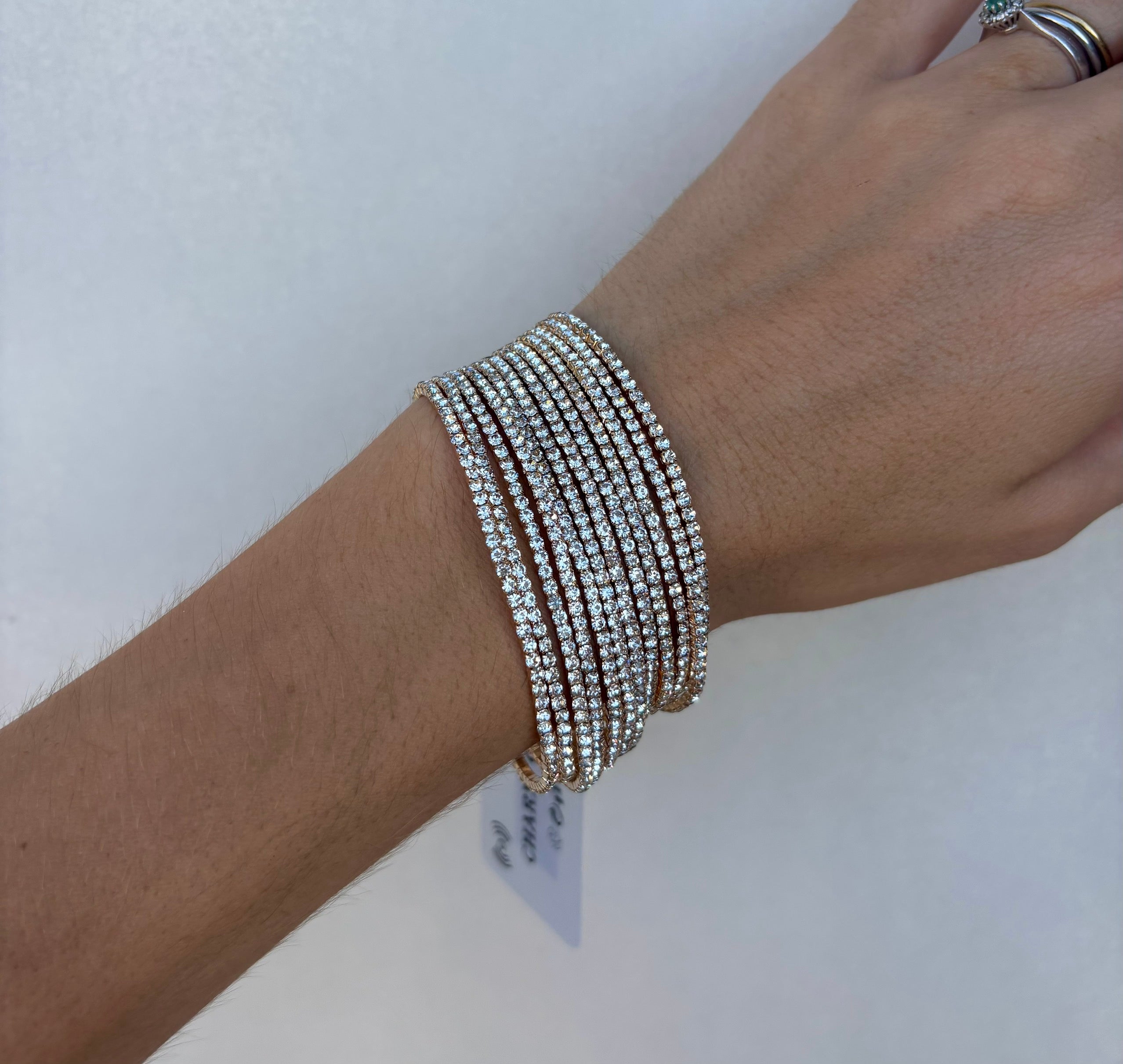 Questo bracciale multifilo con strassini è disponibile in 4 colori che si adattano a ogni tuo look. Aggiungi un tocco di eleganza al tuo outfit con questo accessorio versatile e di tendenza. Realizzato con materiali di alta qualità, sarà una scelta duratura e di classe per ogni occasione.