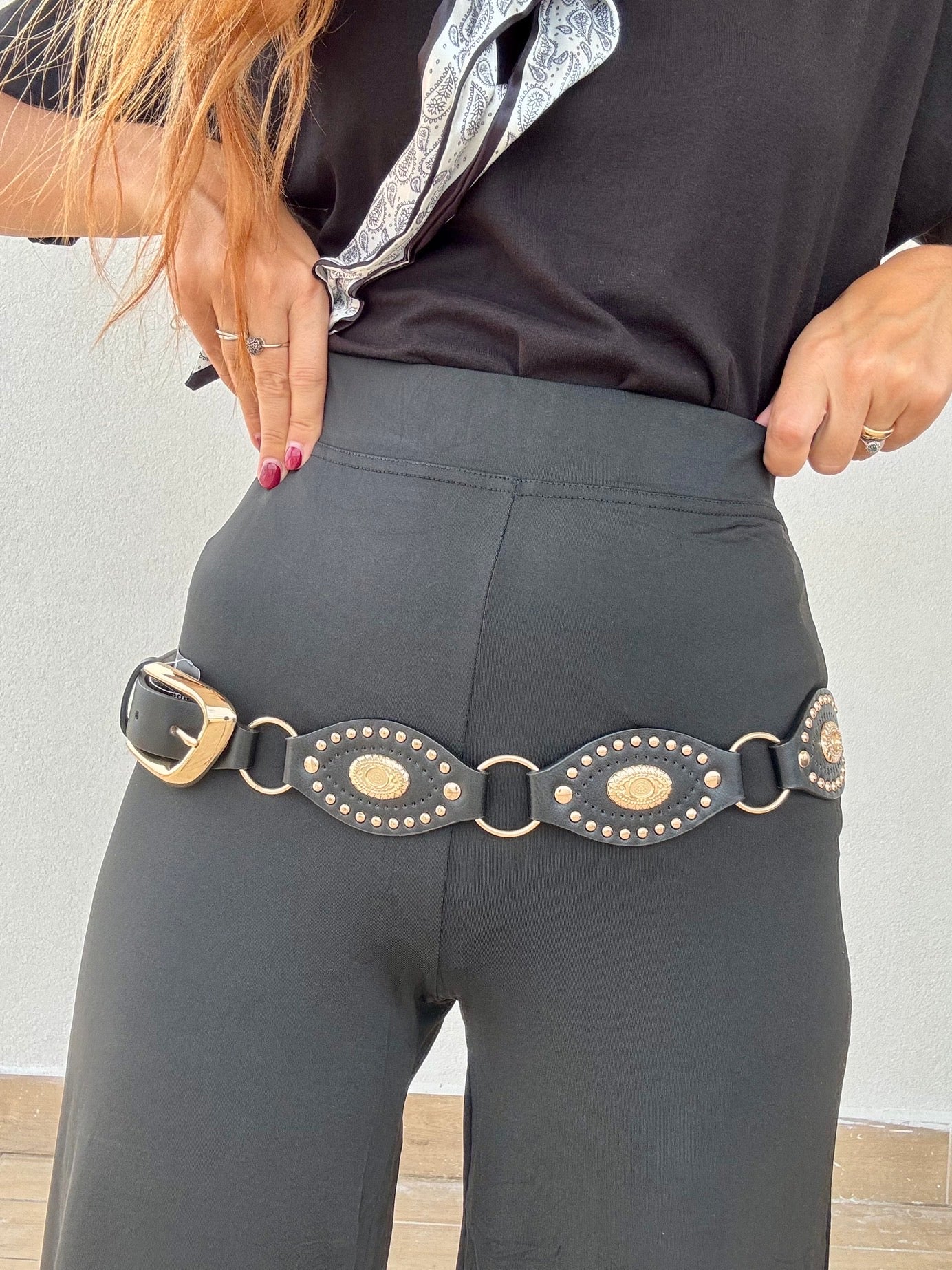 La cintura West unisce un design elegante e audace grazie alla rifinitura in simil pelle e alle borchie dorate che donano un tocco di carattere a ogni outfit. Disponibile in tre colori versatili, è l’accessorio perfetto per valorizzare il tuo stile con un dettaglio distintivo e raffinato. Scegli la qualità e lo stile che fanno la differenza.