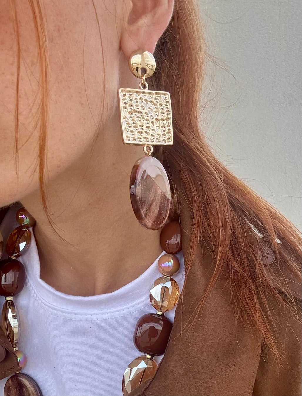 Gli orecchini Terra uniscono eleganza e modernità con la loro pietra abbinata a un raffinato quadrato dorato. Perfetti per valorizzare ogni outfit, aggiungono un tocco di luce e sofisticatezza con un design unico e delicato. Scegli un accessorio che parla di stile e personalità.