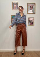 Pantalone MATHILDE in ecopelle, il capo versatile che non può mancare nel tuo guardaroba. Dotato di cintura coordinata e elastico posteriore, si adatta perfettamente fino alla taglia L garantendo comfort e libertà di movimento. Disponibile in 4 tonalità affascinanti, troverai facilmente il colore che rispecchia il tuo stile. Materiale resistente e facile da pulire, ideale per chi ricerca praticità senza compromessi sulla qualità.