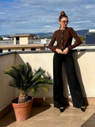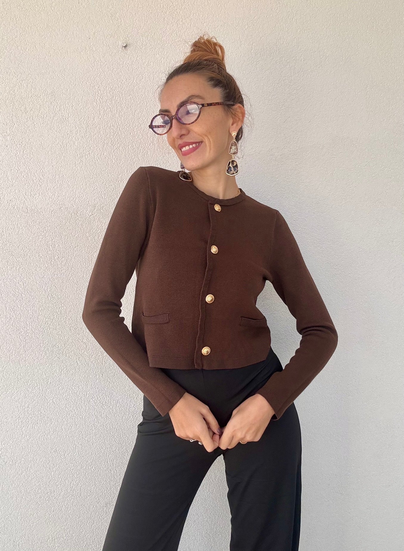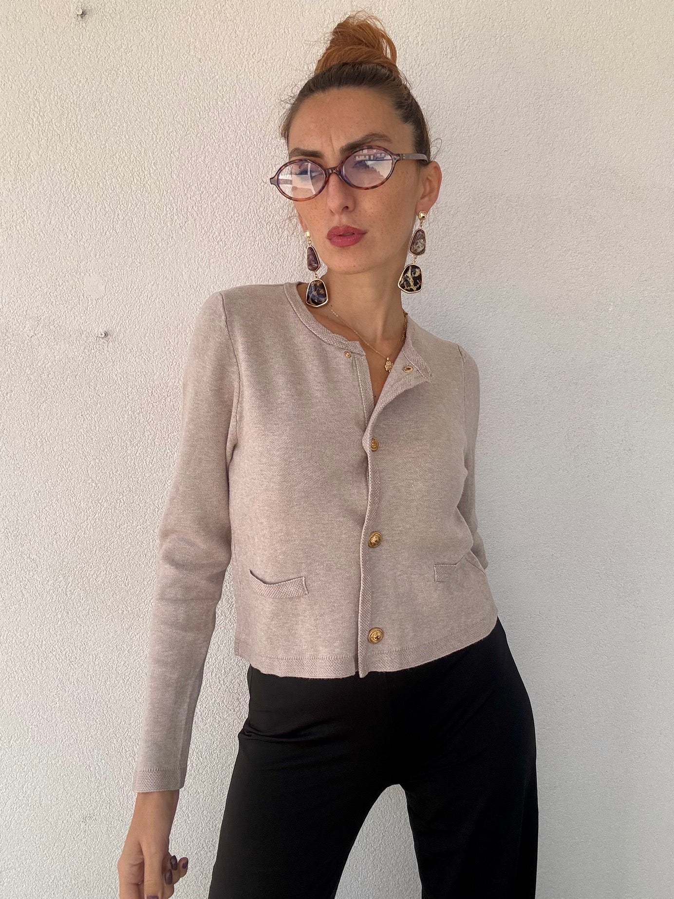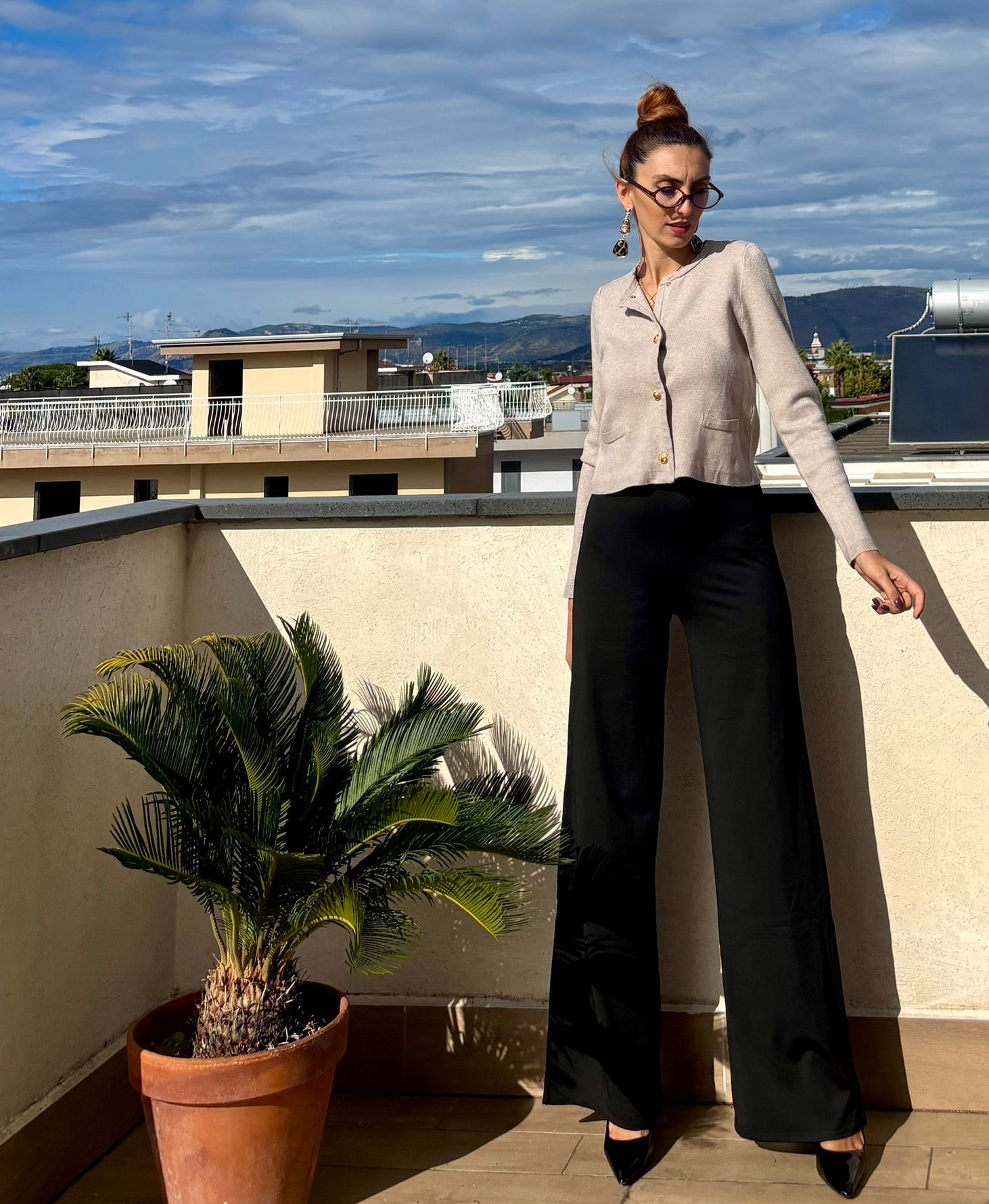 Questo cardigan in viscosa, arricchito da eleganti bottoncini dorati sul davanti, unisce comfort e stile senza sforzo. La taglia unica è studiata per adattarsi perfettamente anche a chi porta una L, garantendo una vestibilità versatile. Disponibile in quattro colori raffinati, è la scelta ideale per aggiungere un tocco sofisticato a ogni outfit.