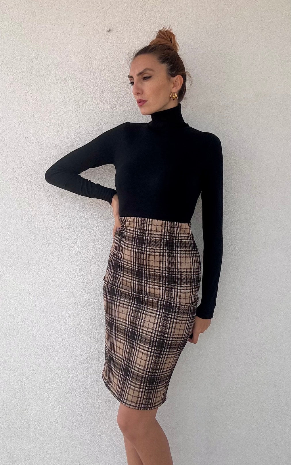 Completo Snow unisce eleganza e comfort con una longuette a vita alta fantasia quadri, disponibile nelle taglie S, M e L per una vestibilità perfetta. Il dolcevita abbinato completa il look, regalando un tocco sofisticato e versatile, ideale sia per l’ufficio che per un’uscita casual. Scegli tra due varianti colore per esprimere al meglio il tuo stile in ogni occasione.