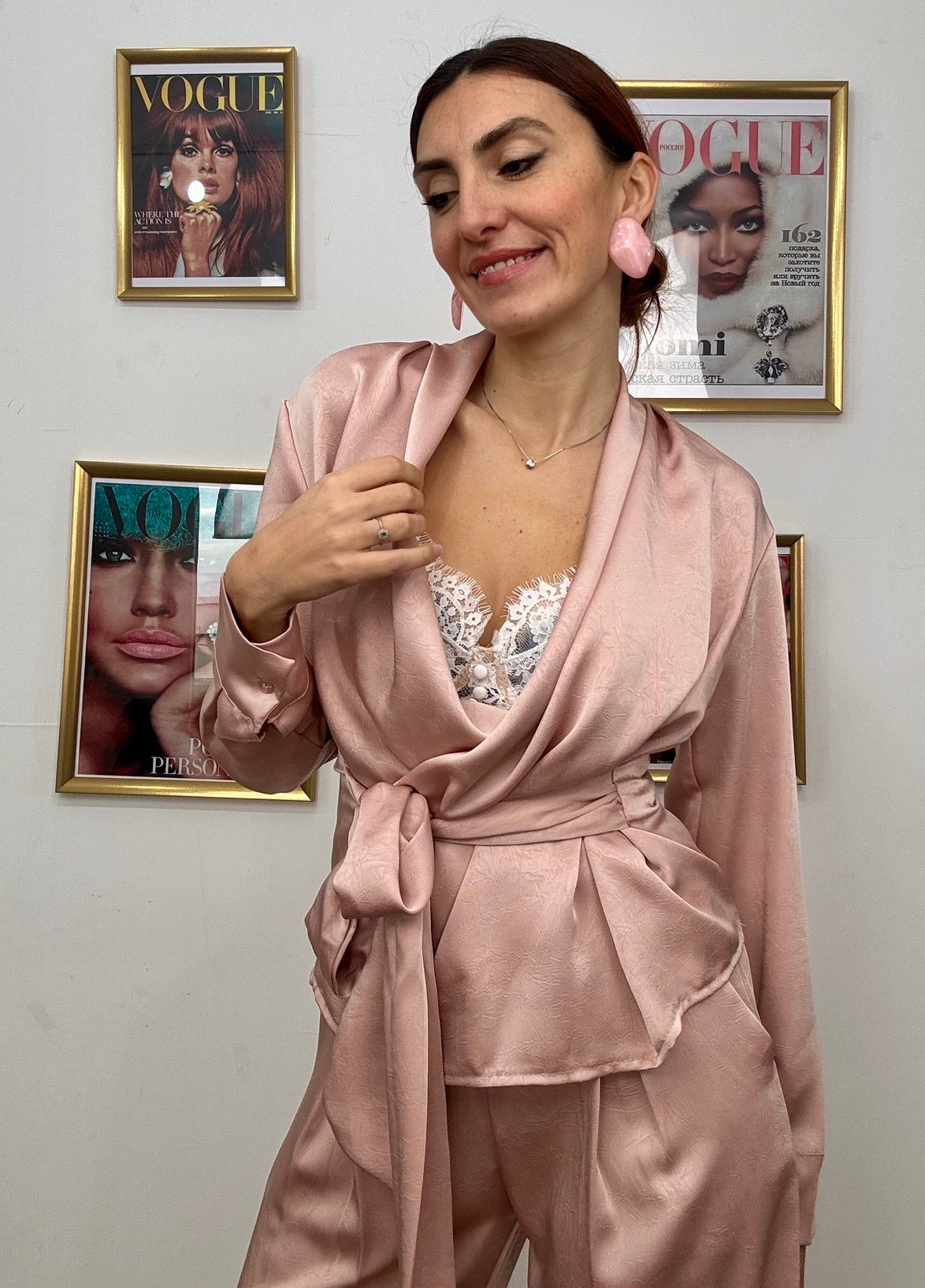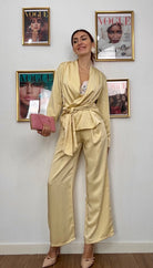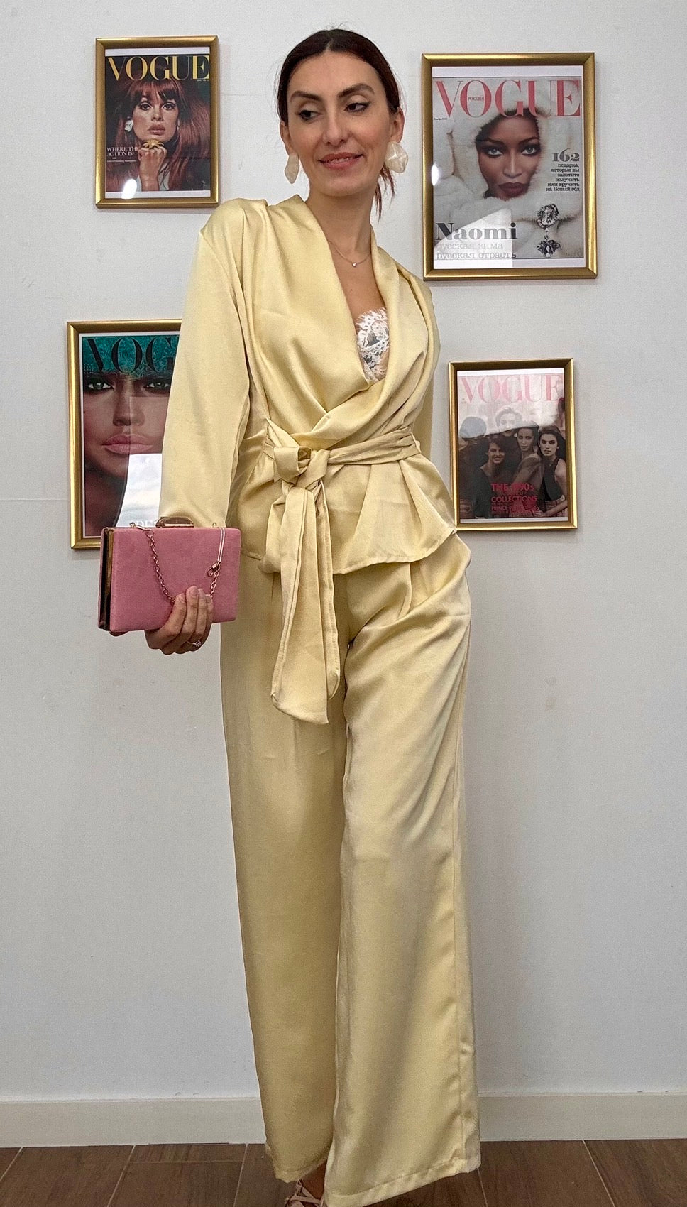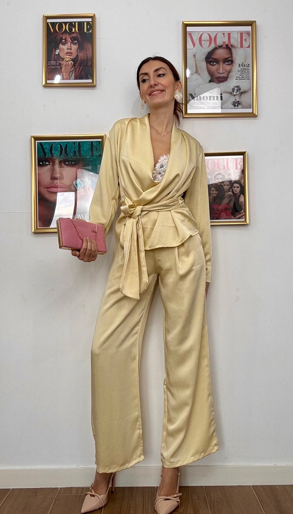 Eleganza senza compromessi con il Completo Tokyo, l'outfit perfetto per chi non sceglie tra stile e comfort. Realizzato in tessuto simil raso che cattura la luce con un finish sofisticato, questo completo unisce una casacca strutturata a un pantalone fluido, completati da una fusciacca in vita che definisce la silhouette. La taglia unica si adatta generosamente, vestendo anche una L, garantendo una vestibilità impeccabile su diverse morfologie. Disponibile in tre colori versatili, è la scelta ideale per chi desidera un look raffinato e contemporaneo, perfetto per occasioni speciali o per elevare il tuo stile quotidiano.