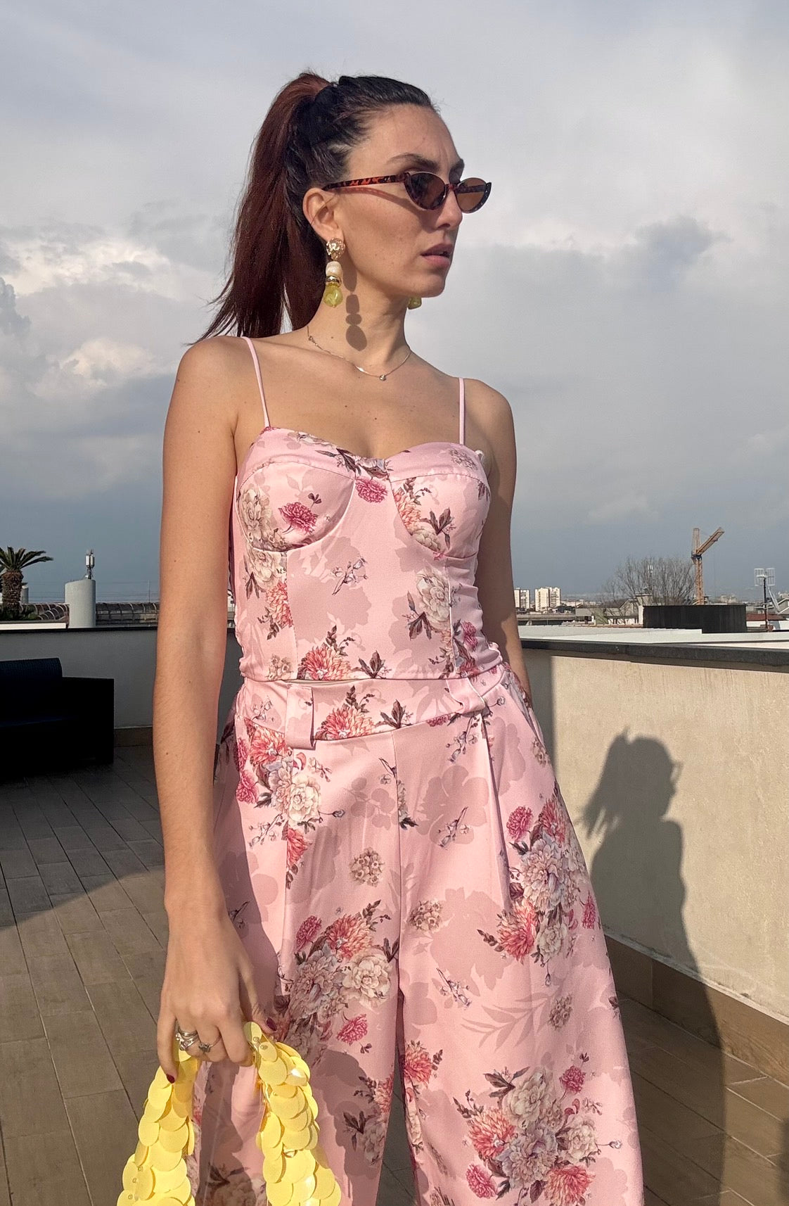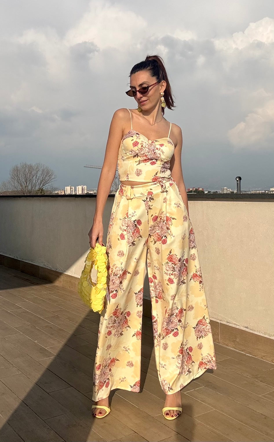 Coordinato elegante composto da pantalone modello largo e top con coppette, perfetto per un look sofisticato e versatile. La taglia unica si adatta fino a una L, garantendo comodità e una vestibilità ottimale. Disponibile in 3 colori per adattarsi al tuo stile personale. Un pezzo essenziale per la tua guardaroba che combina comfort e femminilità.