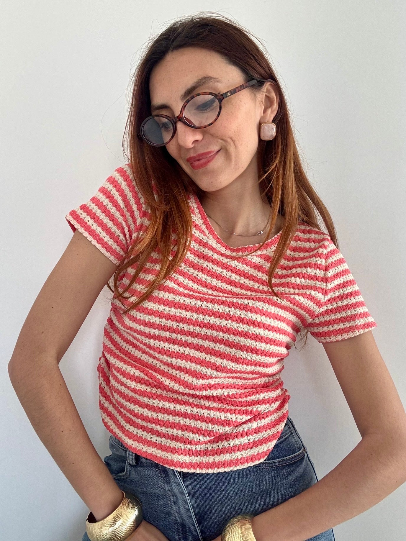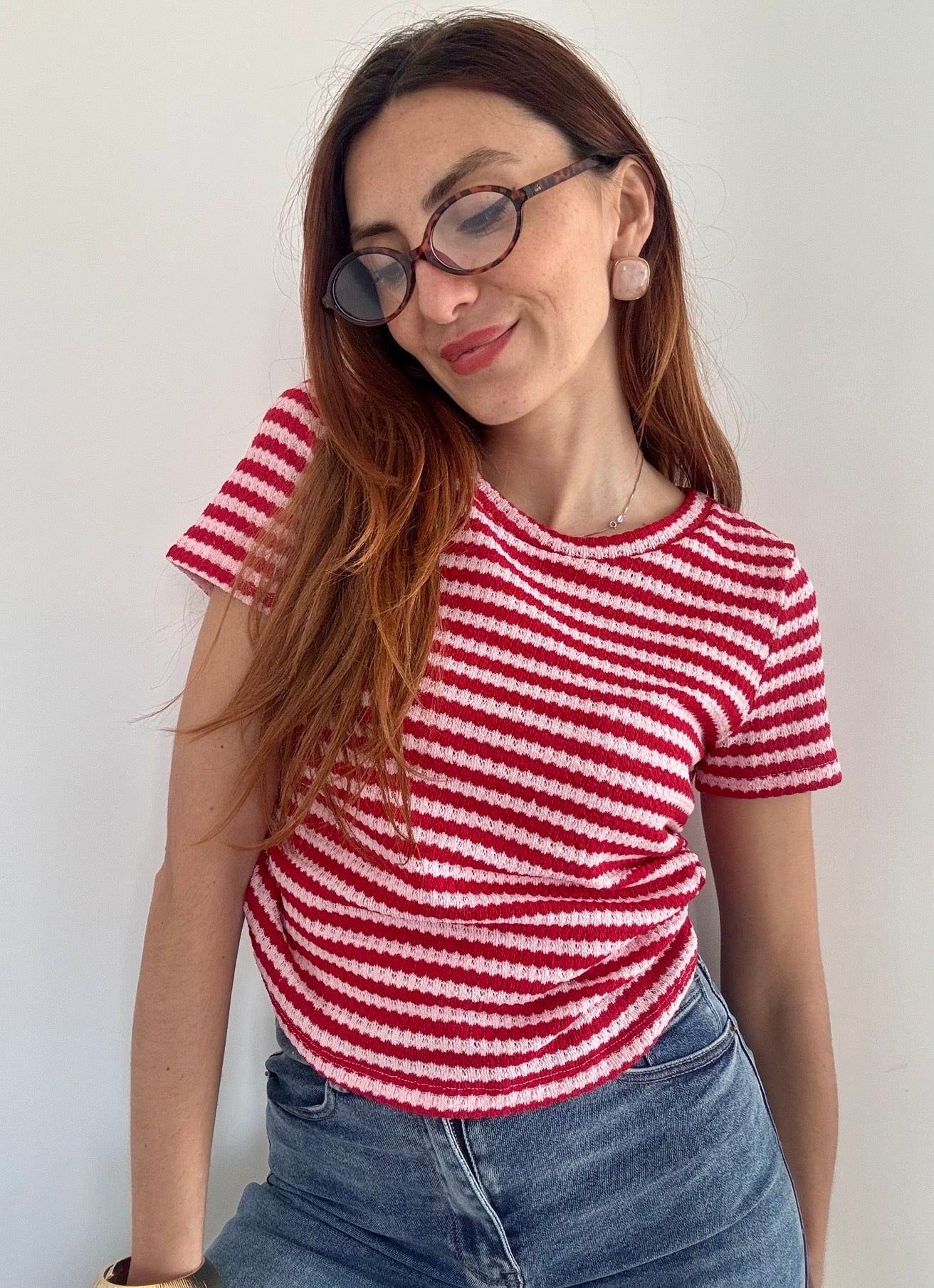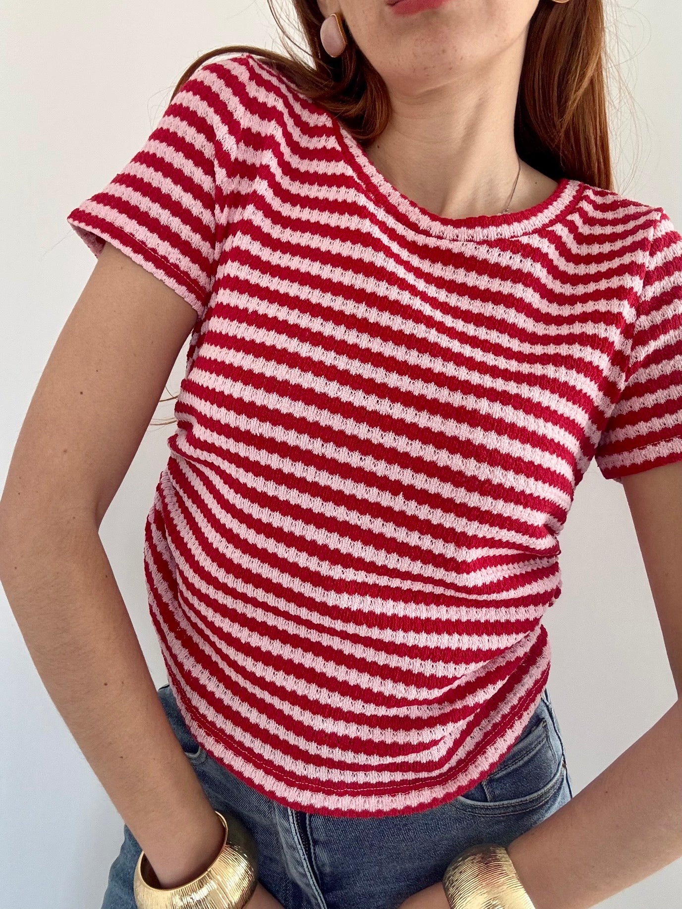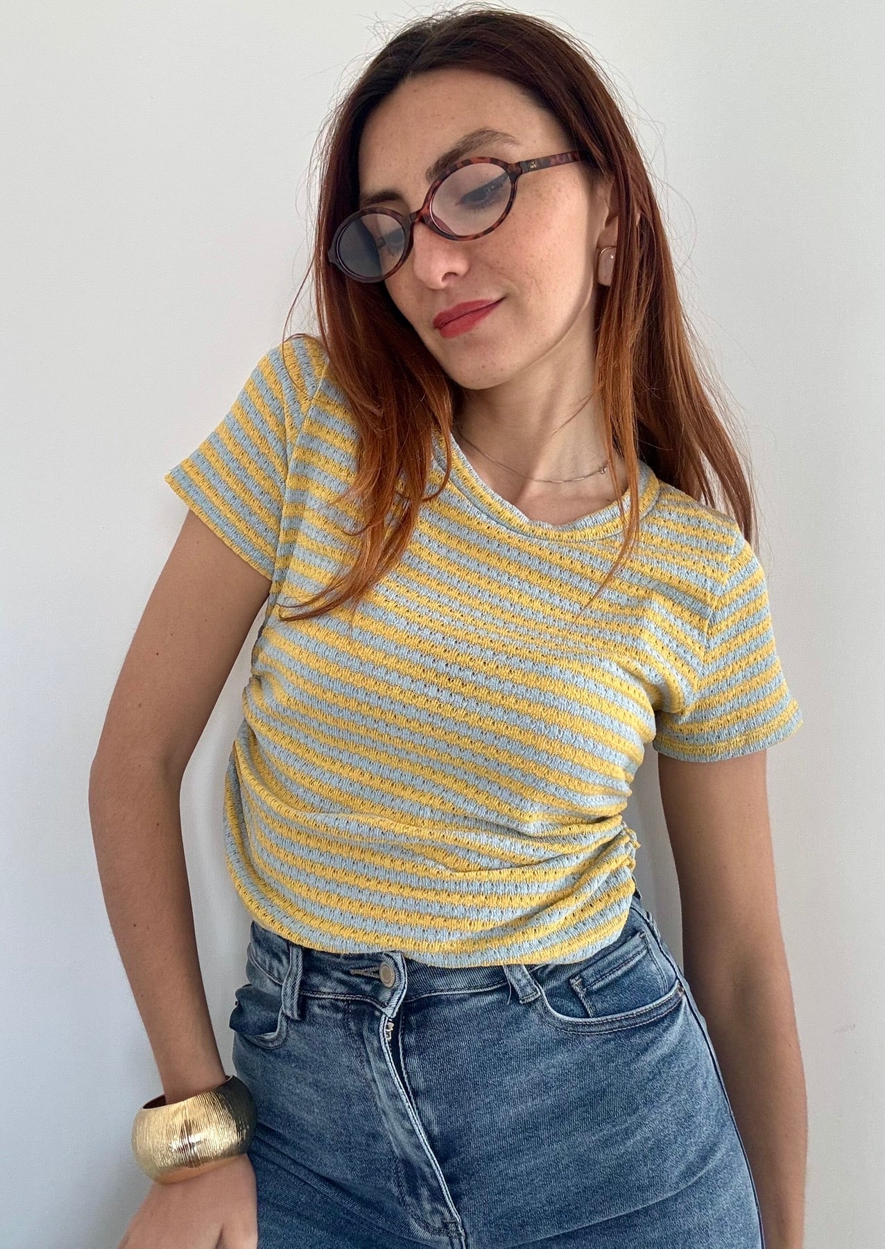 Maglia elegante in filo traforato che cattura la luce con delicatezza. Il dettaglio dell'arriccio ai lati affina la silhouette e regala movimento al capo. Taglia Unica elasticizzata, perfetta fino alla L, si adatta comodamente a diverse morfologie. Disponibile in 4 colori per abbinare il tuo stile personale. Un pezzo versatile ideale per la stagione calda, da indossare da solo o in layering.