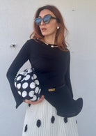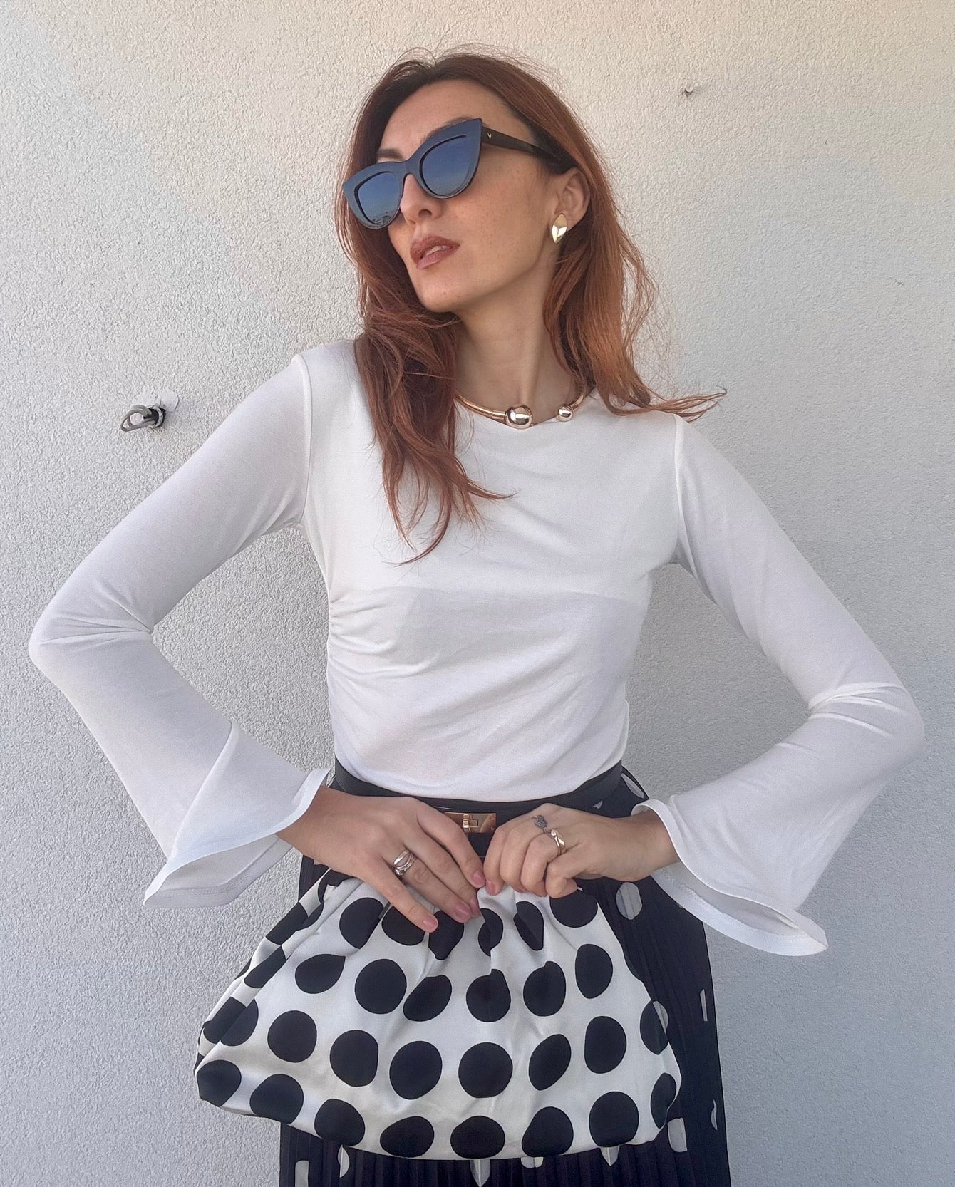 Eleganza fluida e versatile in un'unica maglia che si adatta perfettamente. Il drappeggio delicato crea una silhouette raffinata, mentre le maniche lunghe svasate aggiungono movimento e dinamismo. Taglia Unica che veste anche una L, garantendo comfort senza compromessi. Scegli tra 5 colori esclusivi per esprimere il tuo stile personale. Un capo essenziale che trasforma ogni look con sofisticatezza.