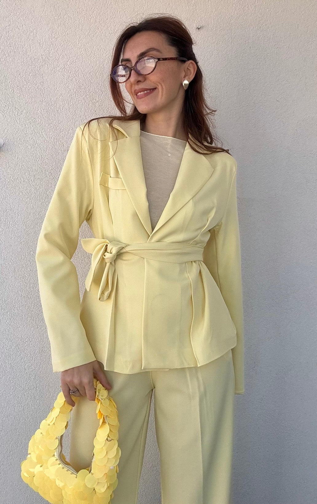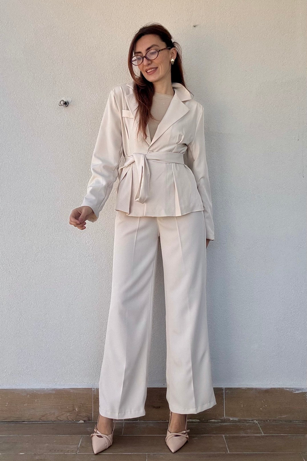 Il tailleur Lavinia è la scelta perfetta per chi desidera eleganza senza compromessi. La giacca avvitata con fusciacca in vita crea una silhouette raffinata e definita, mentre il pantalone con elastico sul retro garantisce comfort durante tutta la giornata. Taglia unica versatile, ideale fino a una L, si adatta a diverse morfologie. Disponibile in 4 colori affascinanti per esprimere il tuo stile personale. Un capo versatile che passa dal lavoro agli eventi speciali con naturalezza.