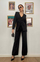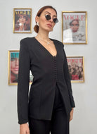 Eleganza senza compromessi con il nostro tailleur che unisce praticità e stile. La giacca blazer con bottoncini discreti e linea senza bavero si abbina perfettamente al pantalone elasticizzato, garantendo comfort durante tutta la giornata. La fodera interna assicura una vestibilità impeccabile e una sensazione di qualità al tatto. Con taglie dalla S alla L e due varianti cromatiche, troverai facilmente la combinazione che valorizza il tuo stile personale. Un investimento versatile per il tuo guardaroba professionale e casual.