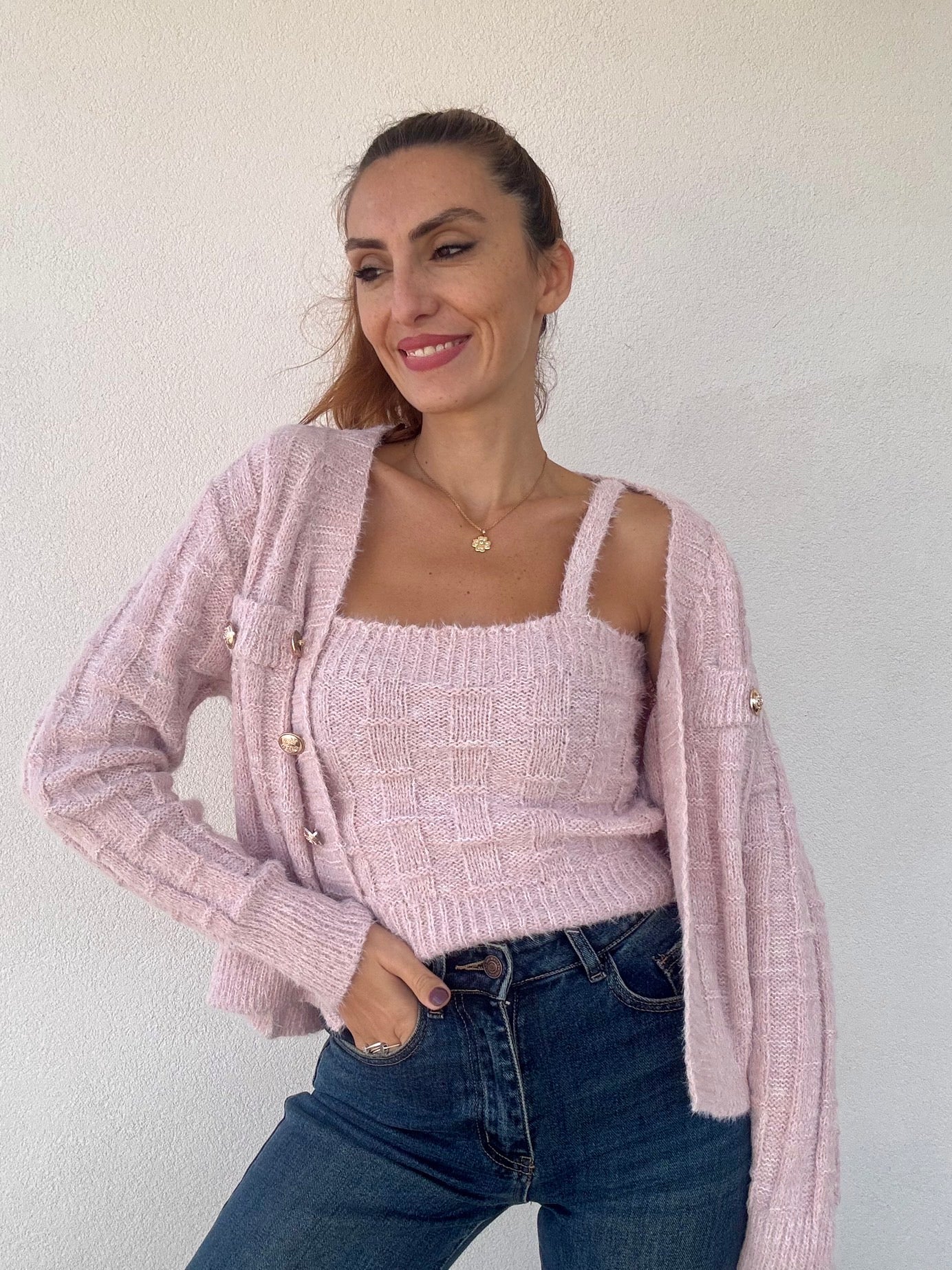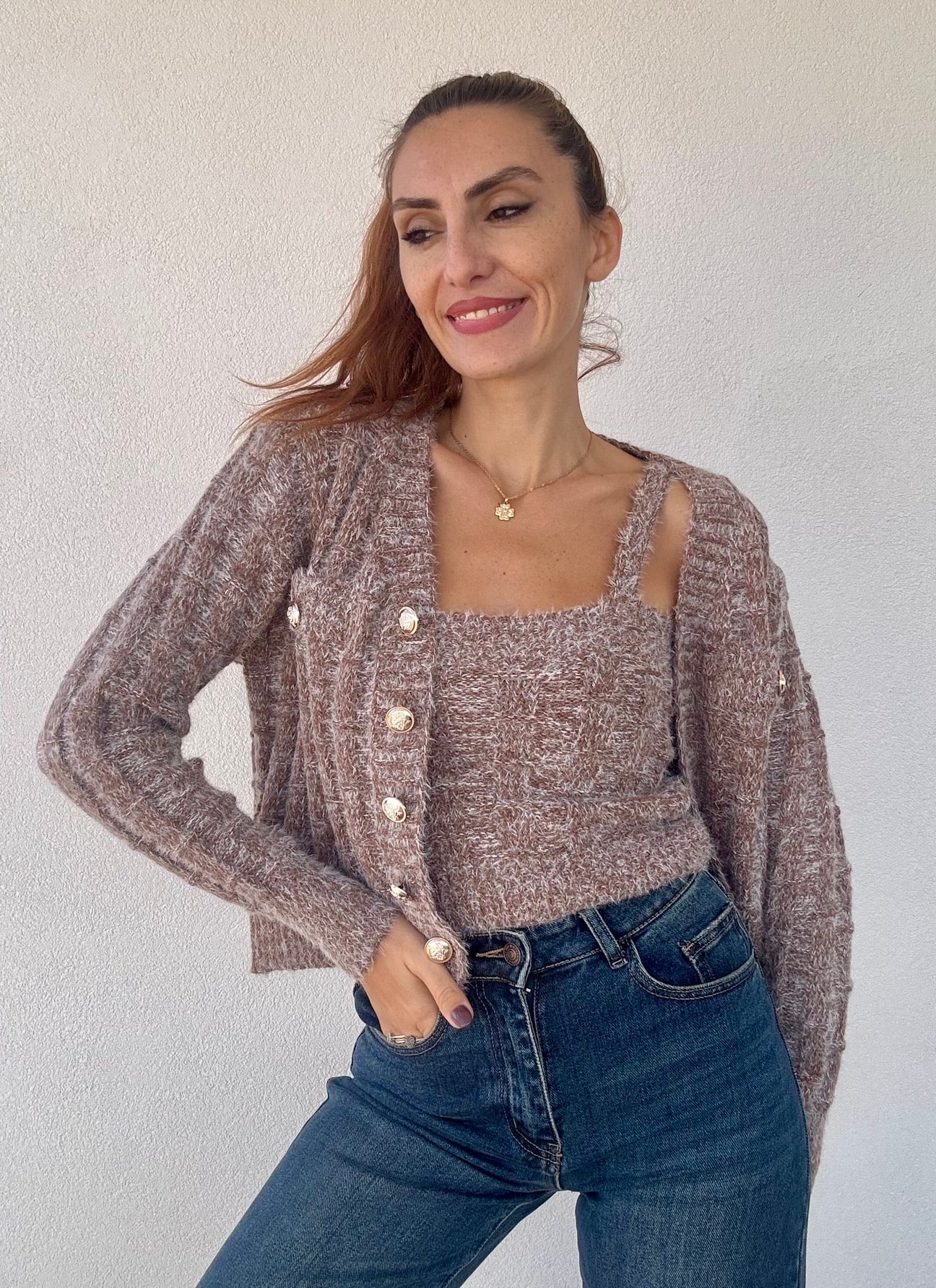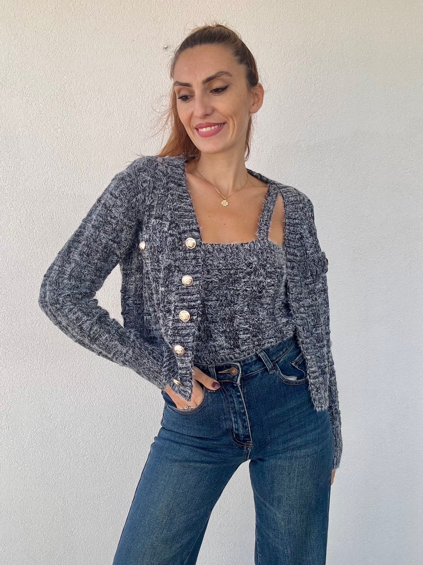 Il Twinset Zoe è il capo versatile perfetto per ogni occasione. Realizzato in una taglia unica molto elasticizzata, si adatta comodamente anche a una taglia L, garantendo una vestibilità impeccabile. I bottoncini dorati aggiungono un tocco di eleganza, mentre la disponibilità in cinque colori ti permette di scegliere quello più adatto al tuo stile. Un mix ideale di comfort e raffinatezza per arricchire il tuo guardaroba.