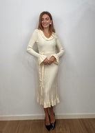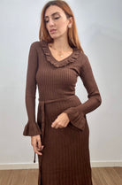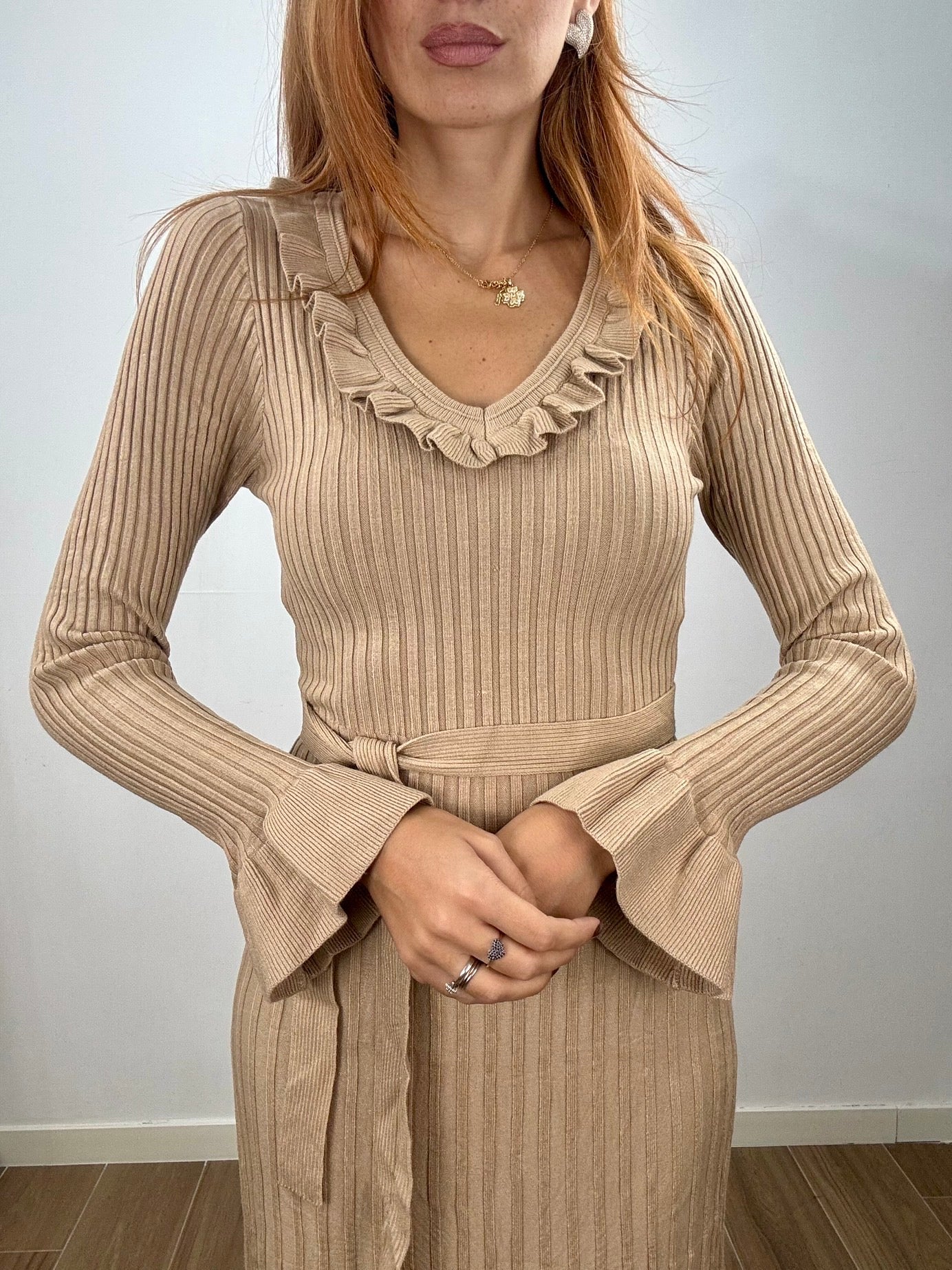 L’abito Brigitte unisce eleganza e comodità grazie alla sua vestibilità versatile, adatta fino a una taglia L. La cintura in vita valorizza la silhouette, mentre le ruches sotto, ai polsi e sullo scollo aggiungono un tocco femminile e sofisticato. Disponibile in cinque colori, è la scelta perfetta per chi cerca uno stile raffinato e adatto a molte occasioni.