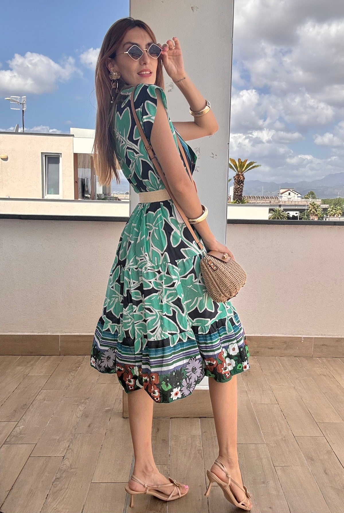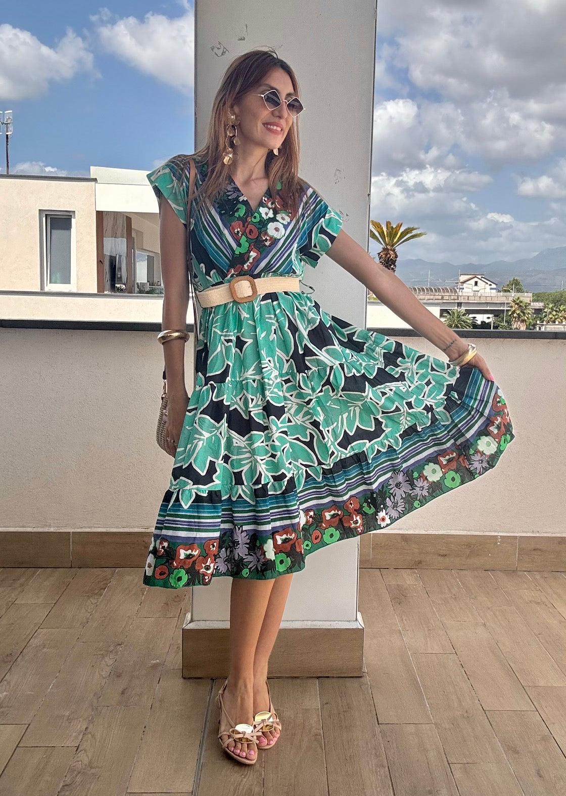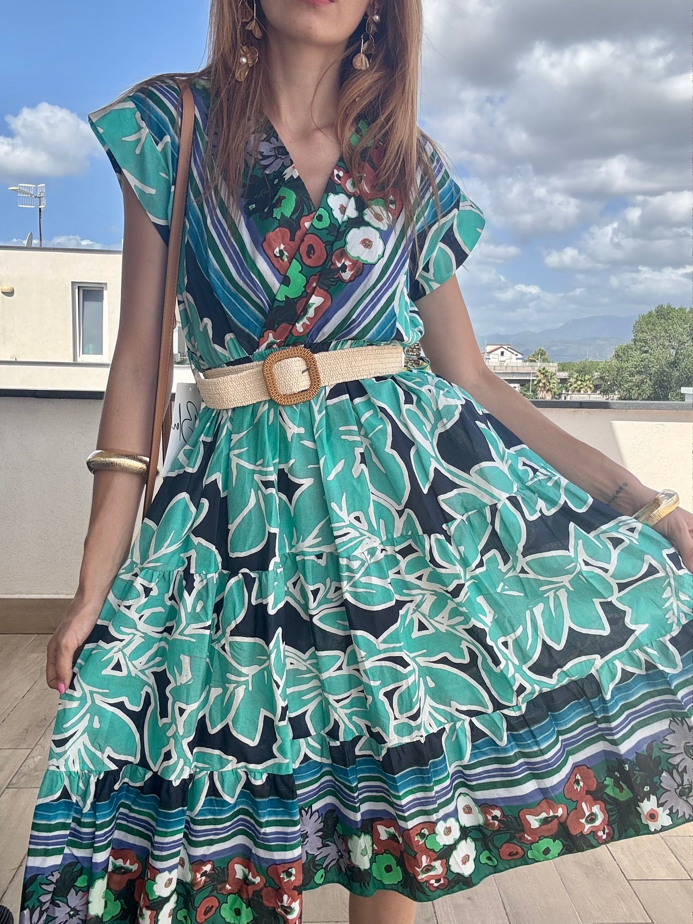 Questo abito longuette in 100% cotone unisce comfort e stile con la sua mezza manica e la cintura in paglia che valorizza la vita. La taglia unica è studiata per adattarsi perfettamente fino a una L, offrendo una vestibilità versatile e femminile. Ideale per chi cerca un capo fresco e raffinato da indossare in ogni occasione.