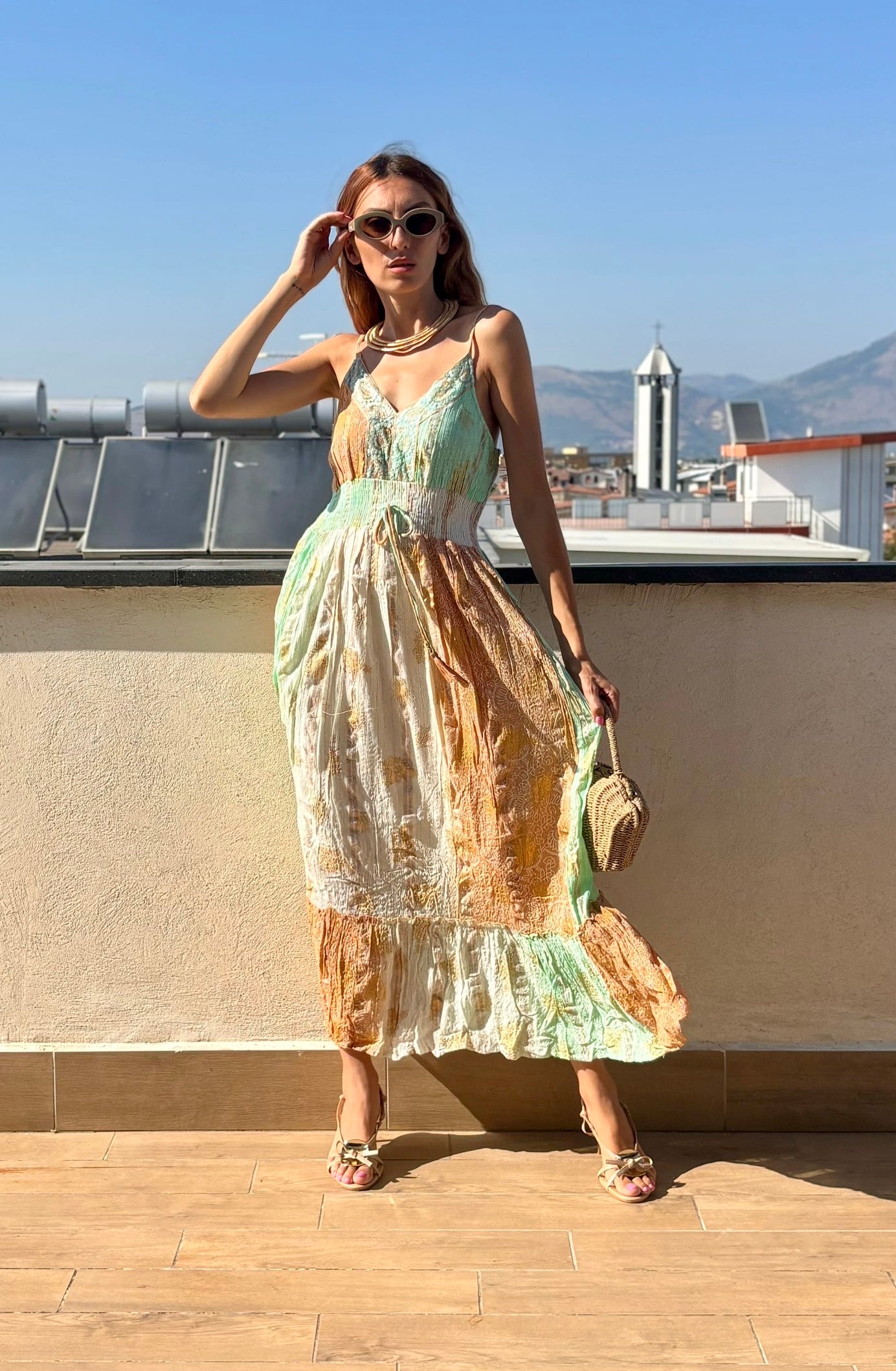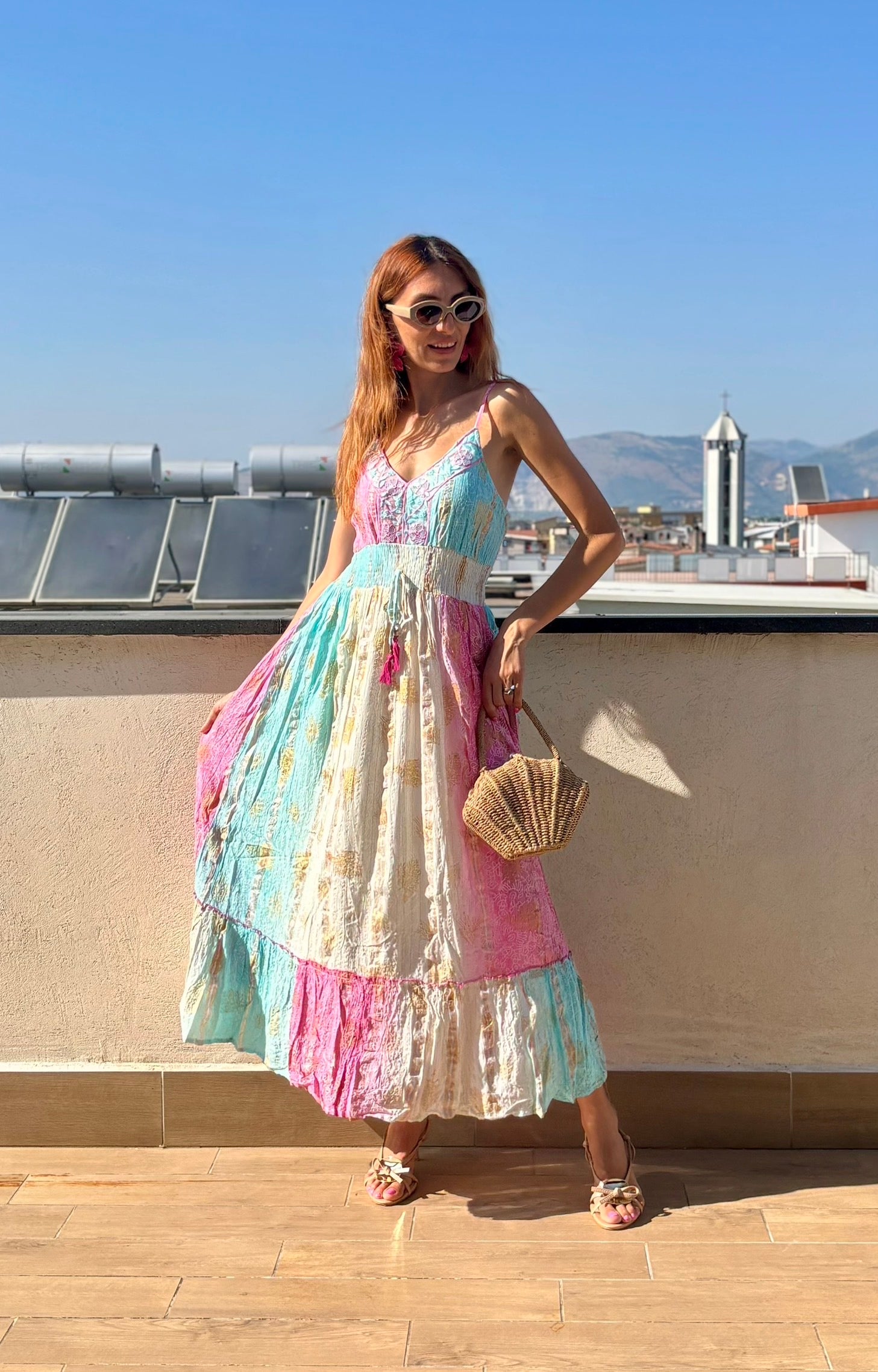 L'abito Marrakech unisce eleganza e versatilità con le sue spalline regolabili e le paillettes luminose sul davanti, perfette per catturare ogni sguardo. La taglia unica veste comodamente fino a una L, garantendo una vestibilità ideale. Disponibile in due varianti di colore, è la scelta perfetta per chi desidera un look sofisticato e adattabile a ogni occasione.