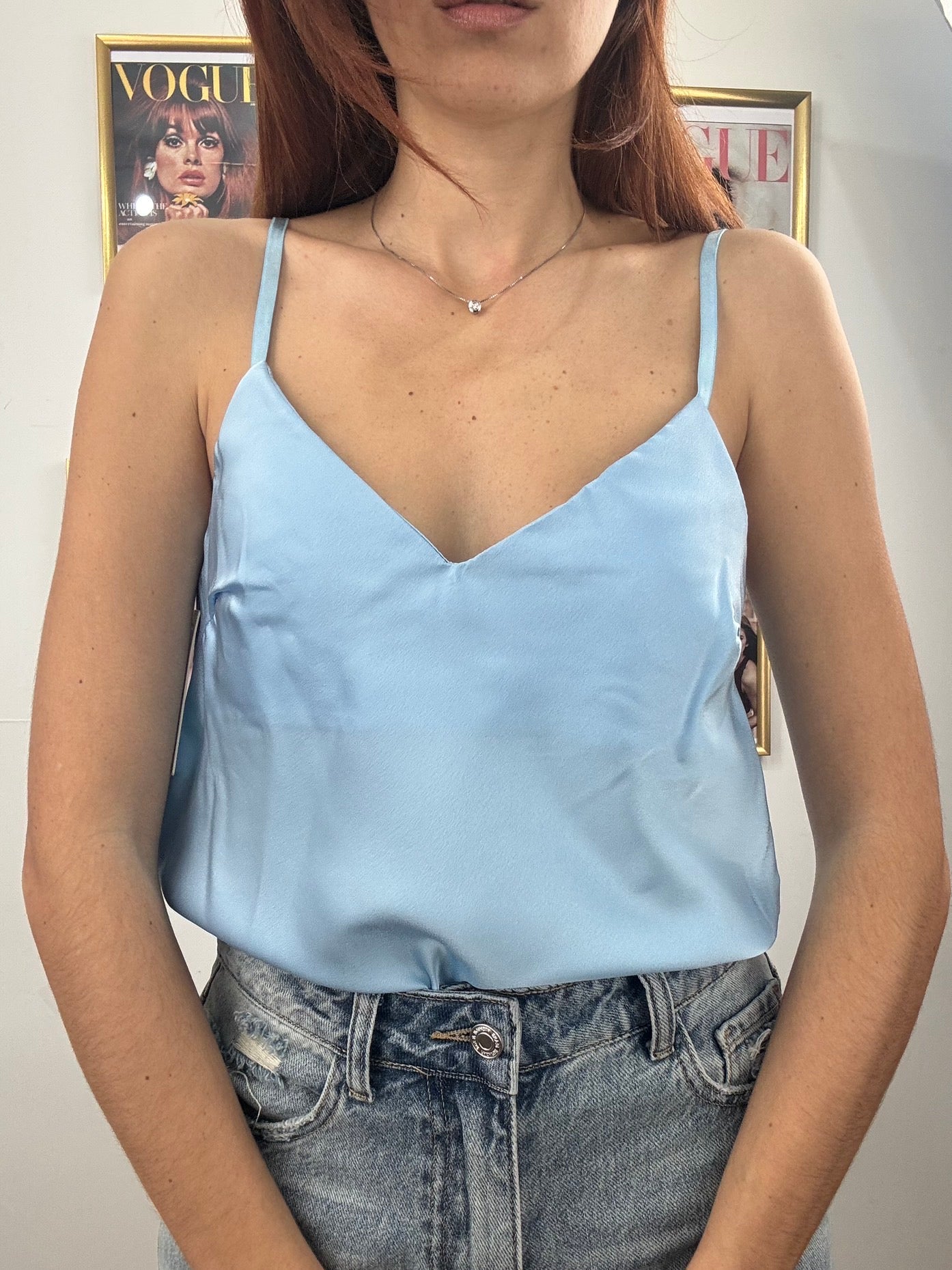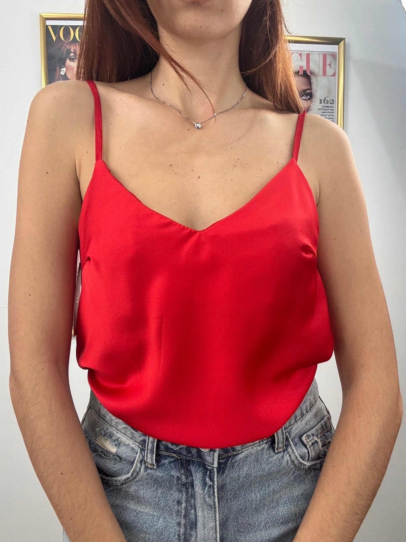 Elegante top in simil raso con bretelline regolabili che si adattano perfettamente a qualsiasi silhouette. La taglia unica offre una vestibilità generosa, ideale anche per chi indossa una L. Disponibile in una varietà di colori per abbinare ogni tuo stile e occasione. Un capo versatile e raffinato che non può mancare nel tuo guardaroba.